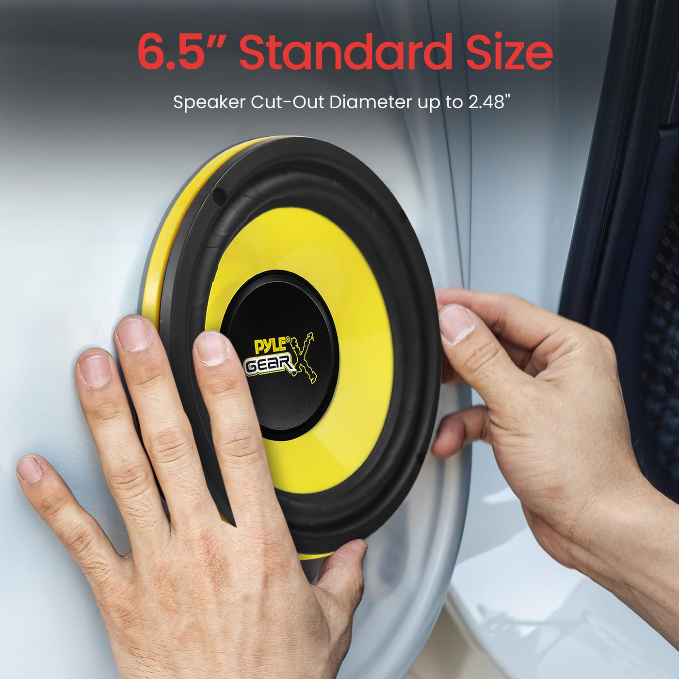 Get In Gear With The Pyle Gear-X Series These Speakers Are Designed To Provide The Best Quality Sound For The Budget-Minded Enthusiast. This 6.5 Woofer Has 300 Watts Of Pure Power Supported By A 1 High Temperature Voice Coil To Boost The Low End. Hear The Rumbling Lows Of Your Favorite Music Thanks To The 30 Oz. Magnet Structure. The Non-Fatiguing Butyl Rubber Surround And Yellow-Color Poly-Injected Cone Provide A Sturdy Foundation For Keeping Your Sound Crystal Clear And Distortion-Free. To Boost Performance, These Speakers Have Been Equipped With A Strong Capacitor, Meaning Your Speakers Will Never Struggle For Power. These Speakers Look Cool, Too, Thanks To The Yellow Coated Steel Basket. Youll Hear Everything You Were Meant To Hear With Pyle Gear.