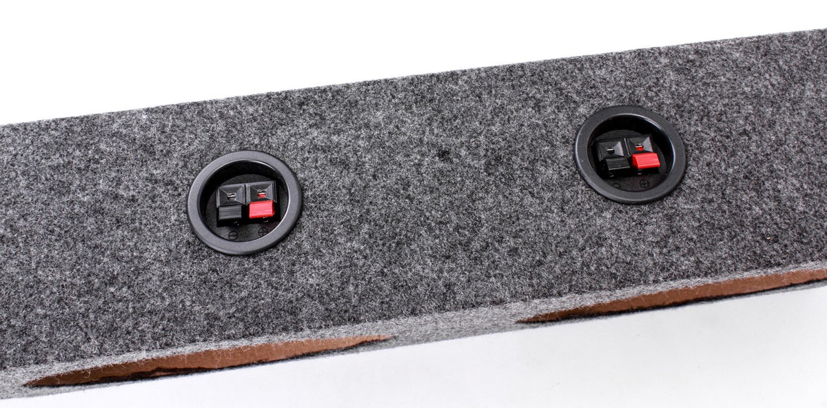 2000-2003 Ford F-150 Pickup 4 Door Super Crew Cab Underseat Up-Firing Dual 10 Woofer Box Single Sealed Chamber Design 58 Mdf Construction Charcoal Carpet Covering Terminal Cups Dimensions (Wxhxtdbd) 48A 11Aa 7A5A Mounting Depth: 4-14 Volume (Sub) 060 Cu Ft Per Sub