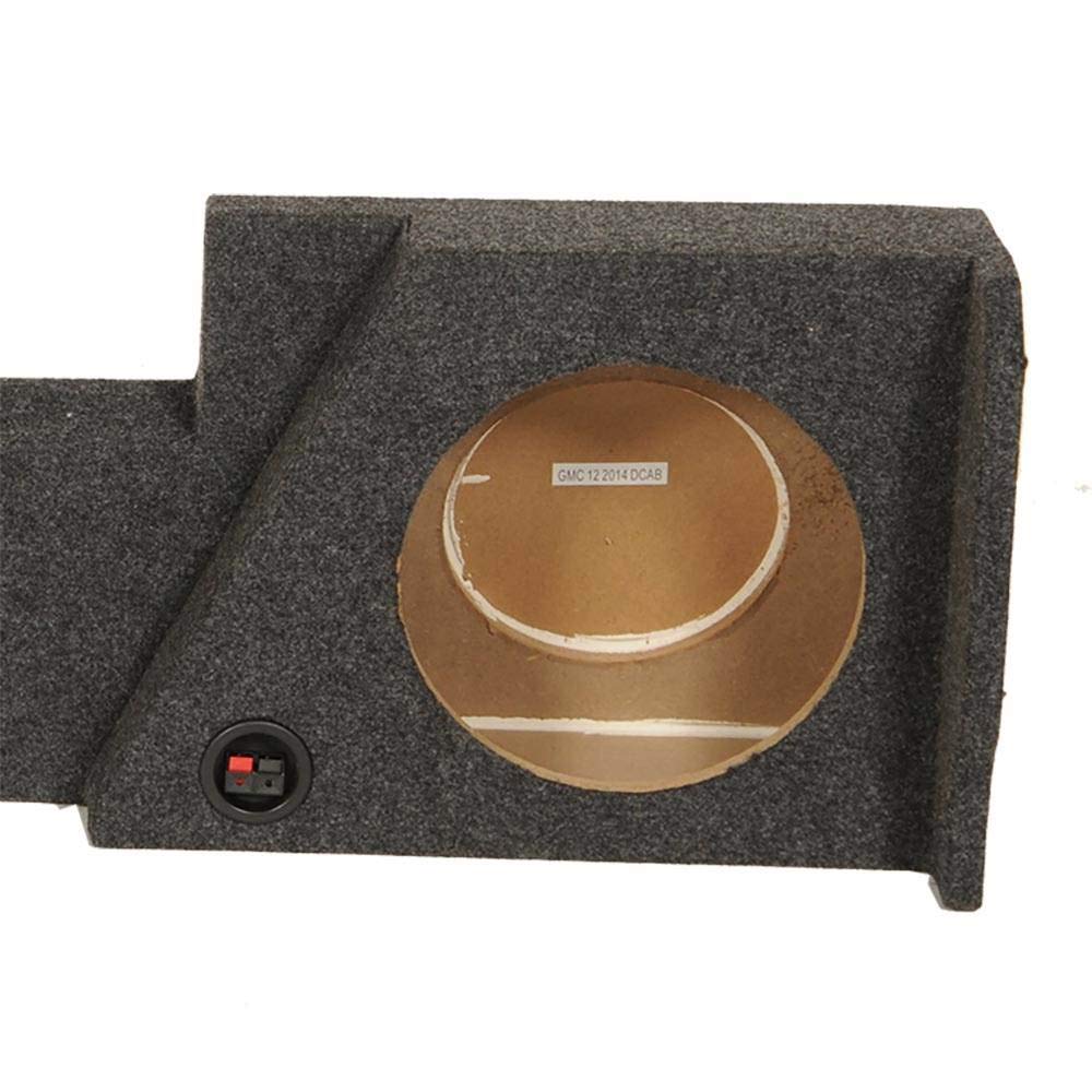 Q: What is the design of the GMC122014DCAB Enclosure?A: This enclosure features an under seat down-firing design, allowing it to fit snugly under the seats of your truck while maximizing sound quality.