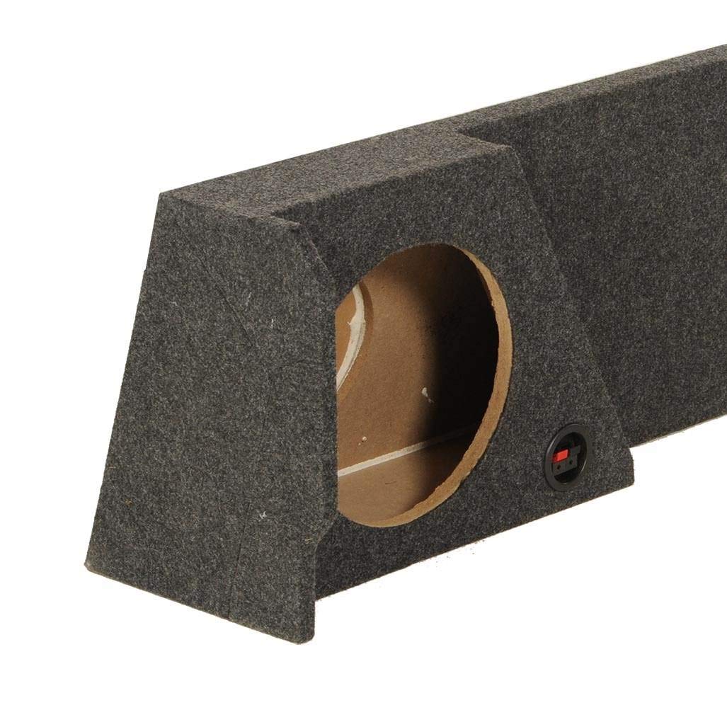 Q: What materials are used in the construction of this subwoofer enclosure?A: The Q Power GMC122014DCAB Subwoofer Enclosure is made from premium charcoal colored carpet which provides durability and a sleek appearance.
