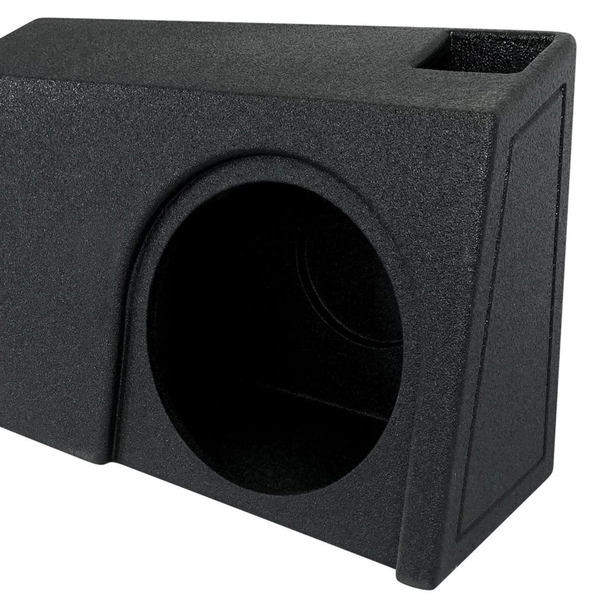 Q: How does the QPower QBGMC19210 enhance my truck's audio system?A: The QPower QBGMC19210 Subwoofer Box is designed to provide secure housing for subwoofers, producing low, booming tones that enhance your audio setup with powerful bass for an impressive sound experience.