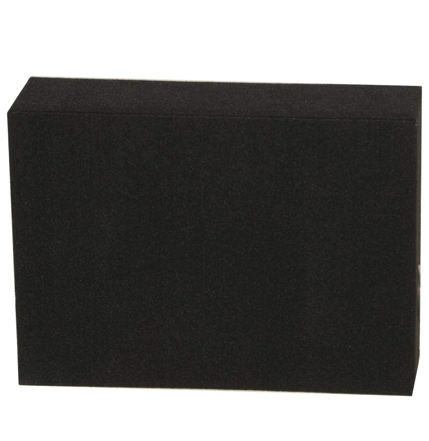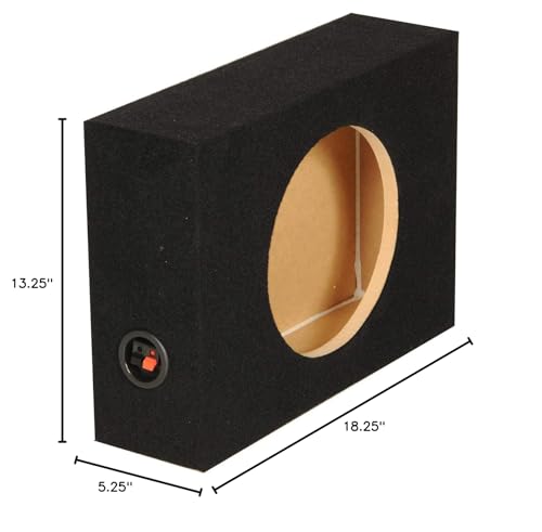 Single 12 Sealed For Shallow Mount Woofers 58 Mdf Premium Black Carpet Universal Truck Application Air Space: 053 Cubic Feet Mounting Depth: 45 (Shallow Mount Woofers Only) Height: 145 Width: 18 Depth: 525