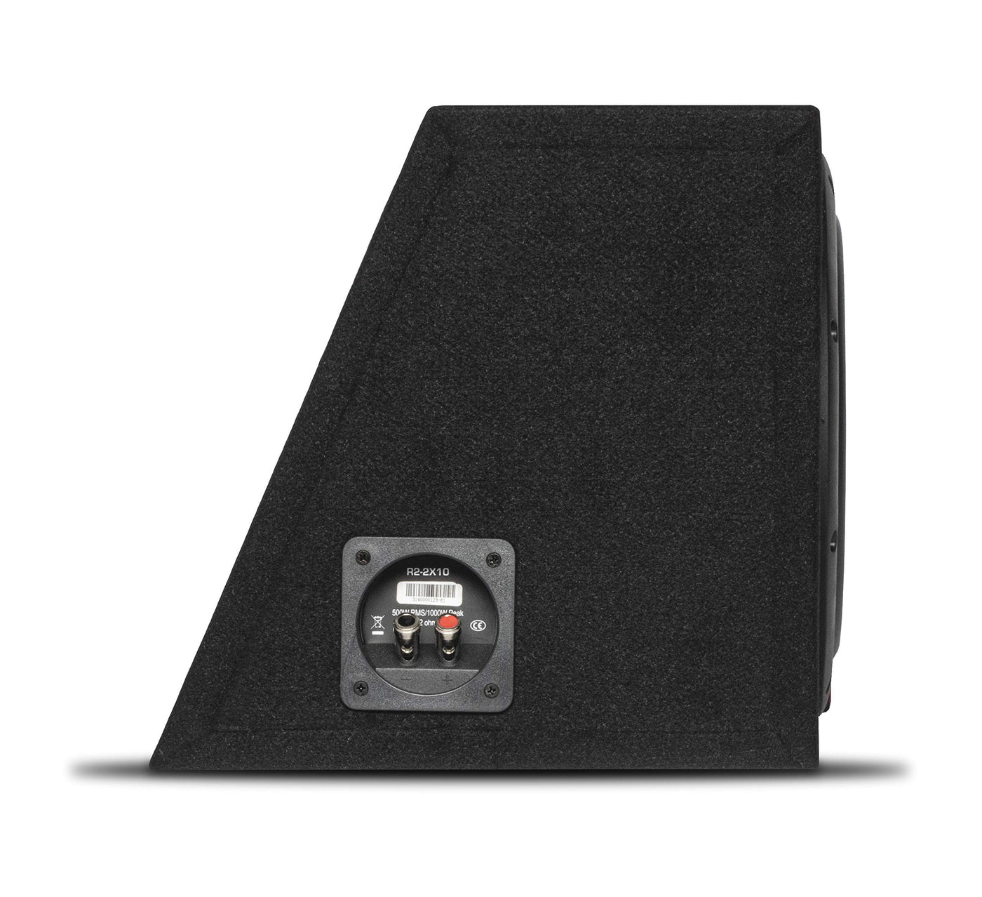 Prime R2 Dual 10' Enclosure With A Power Handling Of 500 Watts Rms / 1000 Watts Peak Is Internally Wired To Create A 2-Ohm Amplifier Load. Constructed With 5/8' Mdf, Covered With High Density Carpet With High Current Binding Posts For Easy Install.