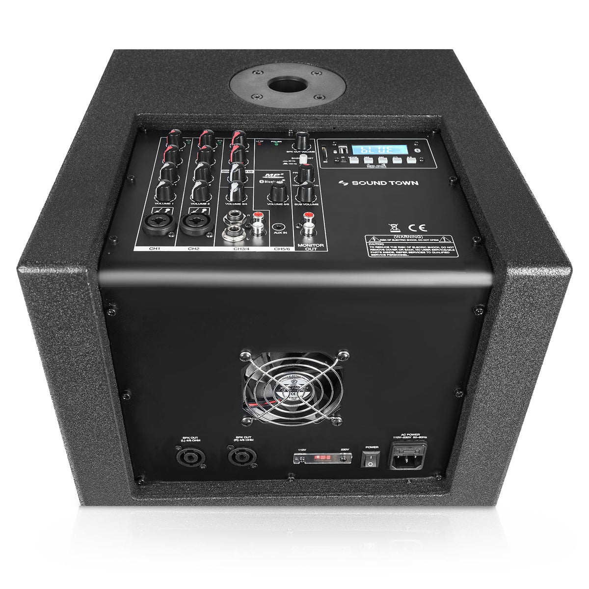 Sound Town 1400 Watts 12' Powered Pa/Dj Subwoofer 2.1 Channel W/ 2 Speaker Outputs, Folded Horn Design, Built-In Mixer, Plywood, Black (Carpo-M12Ds)