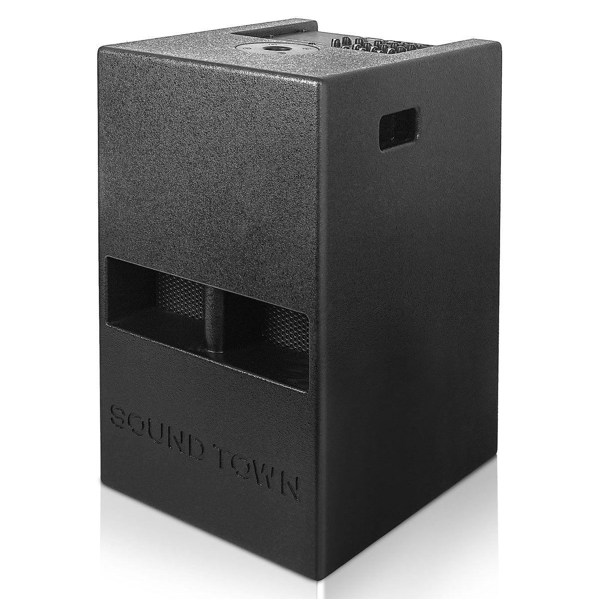 Sound Town 1400 Watts 12' Powered Pa/Dj Subwoofer 2.1 Channel W/ 2 Speaker Outputs, Folded Horn Design, Built In Mixer, Plywood, Black (Carpo M12Ds)