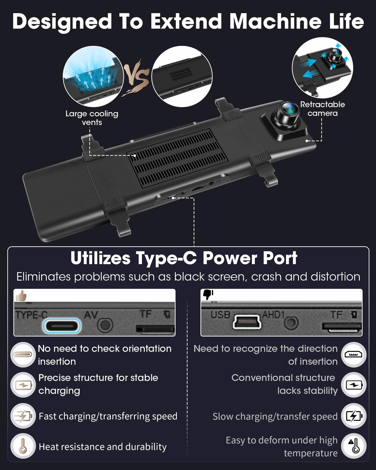 2024 Upgraded 12'' 4K Rear View Mirror Camera With Wifi,2160P Mirror Dash Cam Front And Rear Backup Camera For Cars & Trucks,Wdr