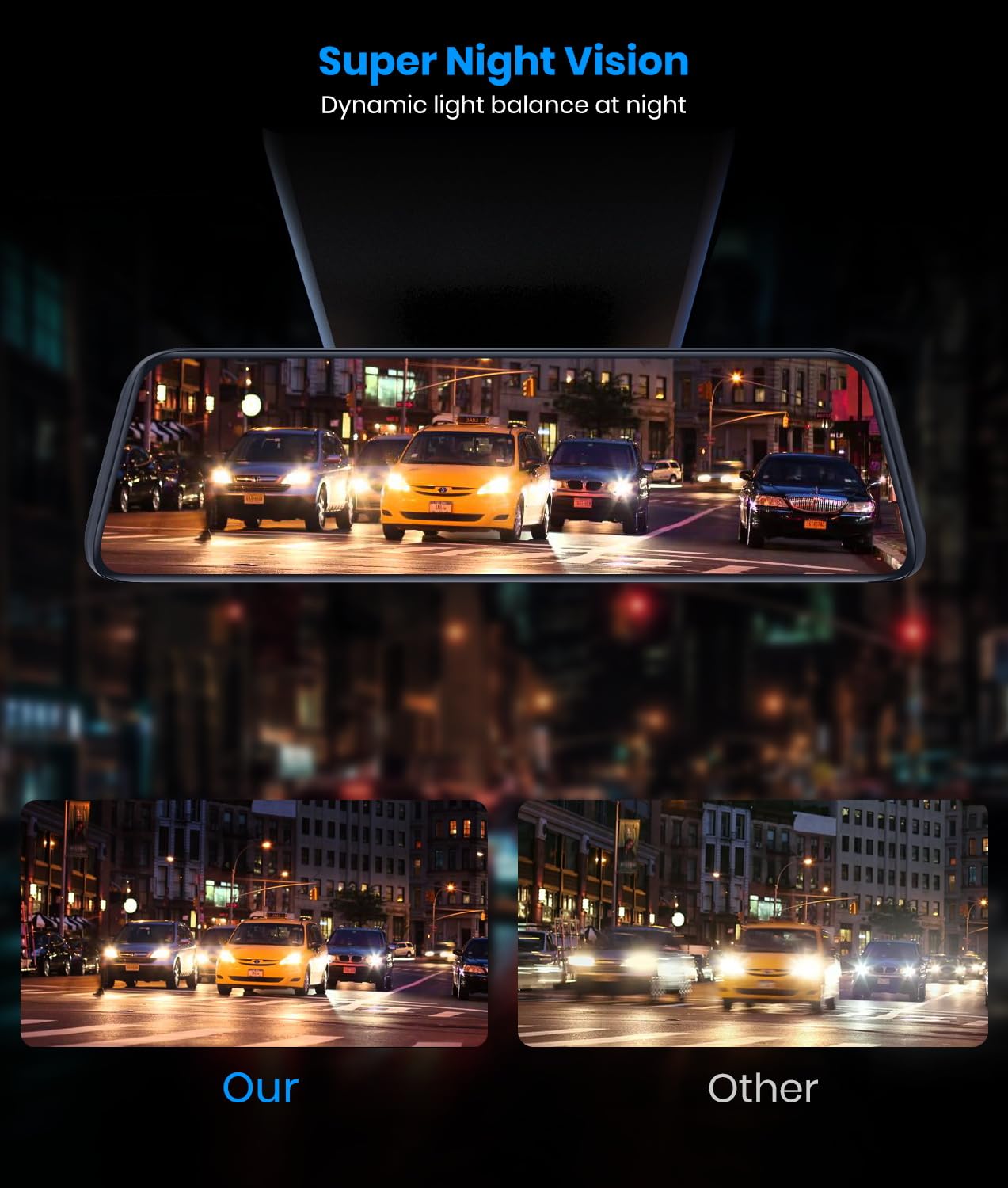 Why Choose This Rear View Mirror Dash Cam? 1. Detached Front Camera Eliminates More Blind Points 2. Anti-Vibration Oem Look With Bracket Mount 3. 2K Crystal Sharp Image At Day &Amp; Night 4. Automatic Adjustable Rear View Angle For Parking Safety&Nbsp; 5. Anti-Glare &Amp; Worry-Free Overexposure 6. 24H Parking Monitor Protects Car Battery 7. Built-In Gps 8. Loop-Recording &Amp; G-Sensor 9.&Nbsp;Mirror Dash Cam Records Front And Rear Simultaneously