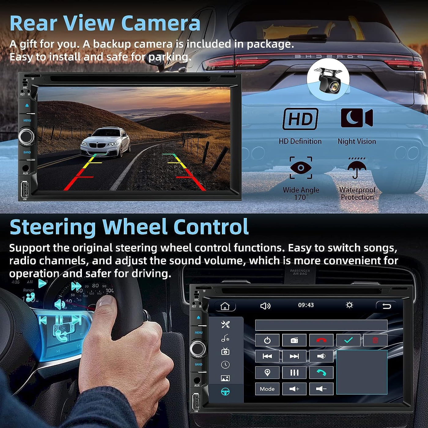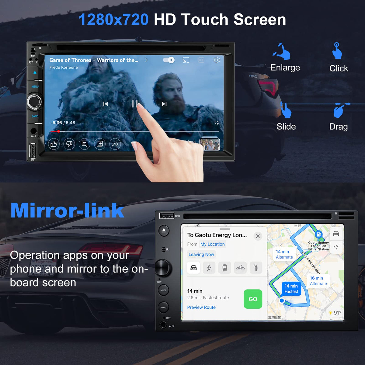 Double Din Car Stereo With Cd/Dvd Player Carplay & Android Auto, Car Audio With Bluetooth, 7 Inch Hd Touchscreen, Rear Camera,