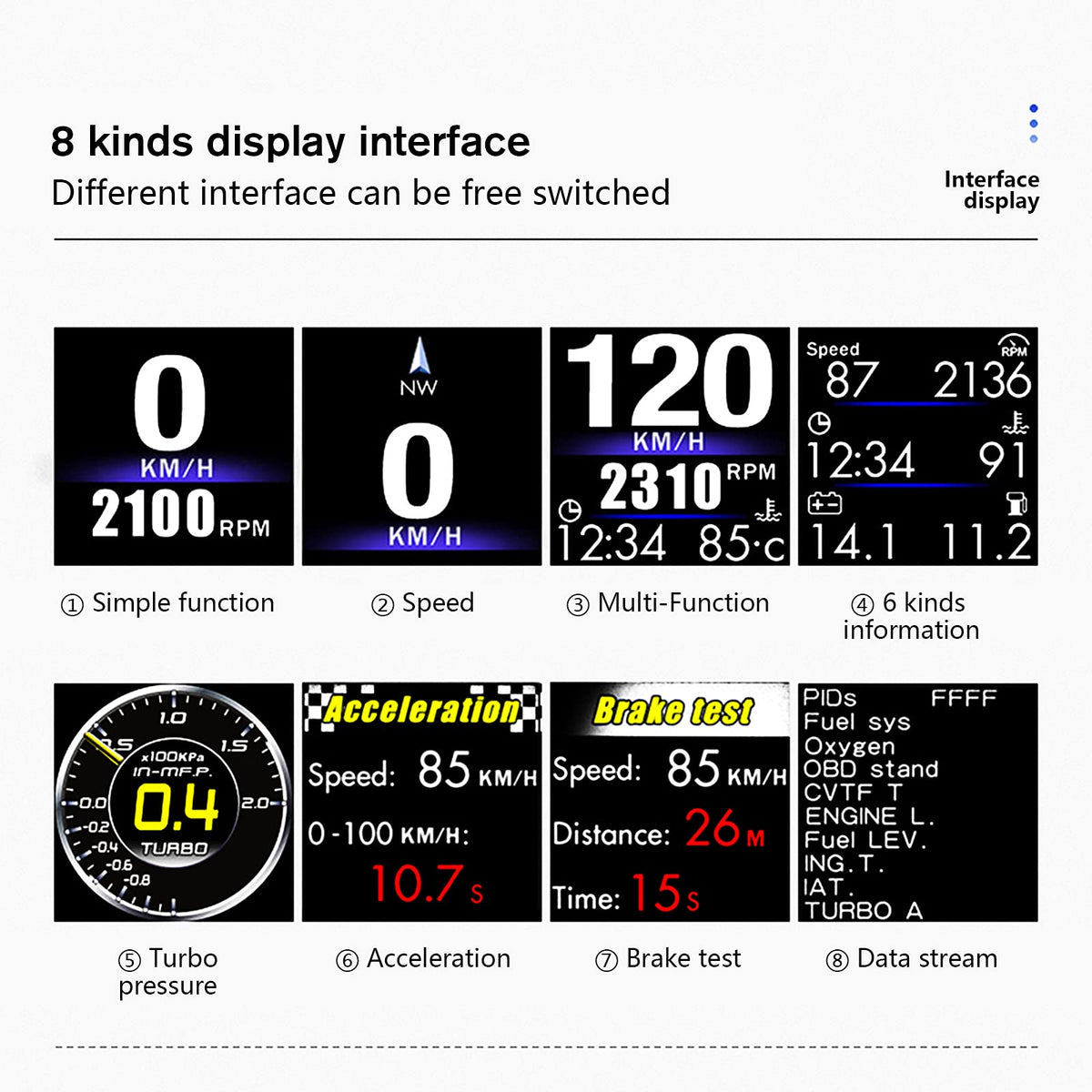2 Kinds Install---Install On A-Pillar Trim Or Put On Dashboard, More Easy For Use. Simply Displays Directly To You At Whatever Angle You Set It Up Is Possible, No Need To Make Effort Or Look Down That Would Create Distractions, Best Assistant To Help Ensure Your Driving Safety.