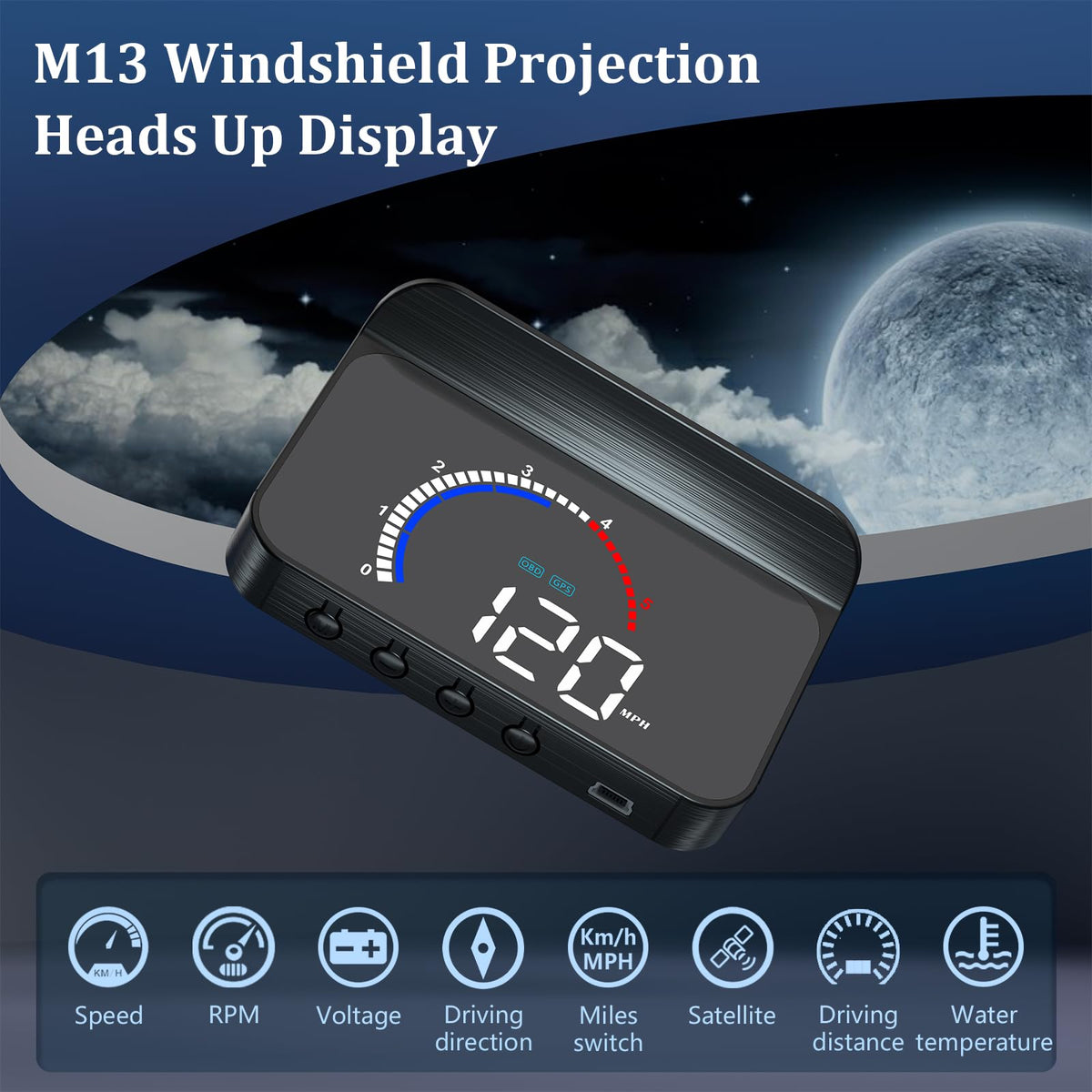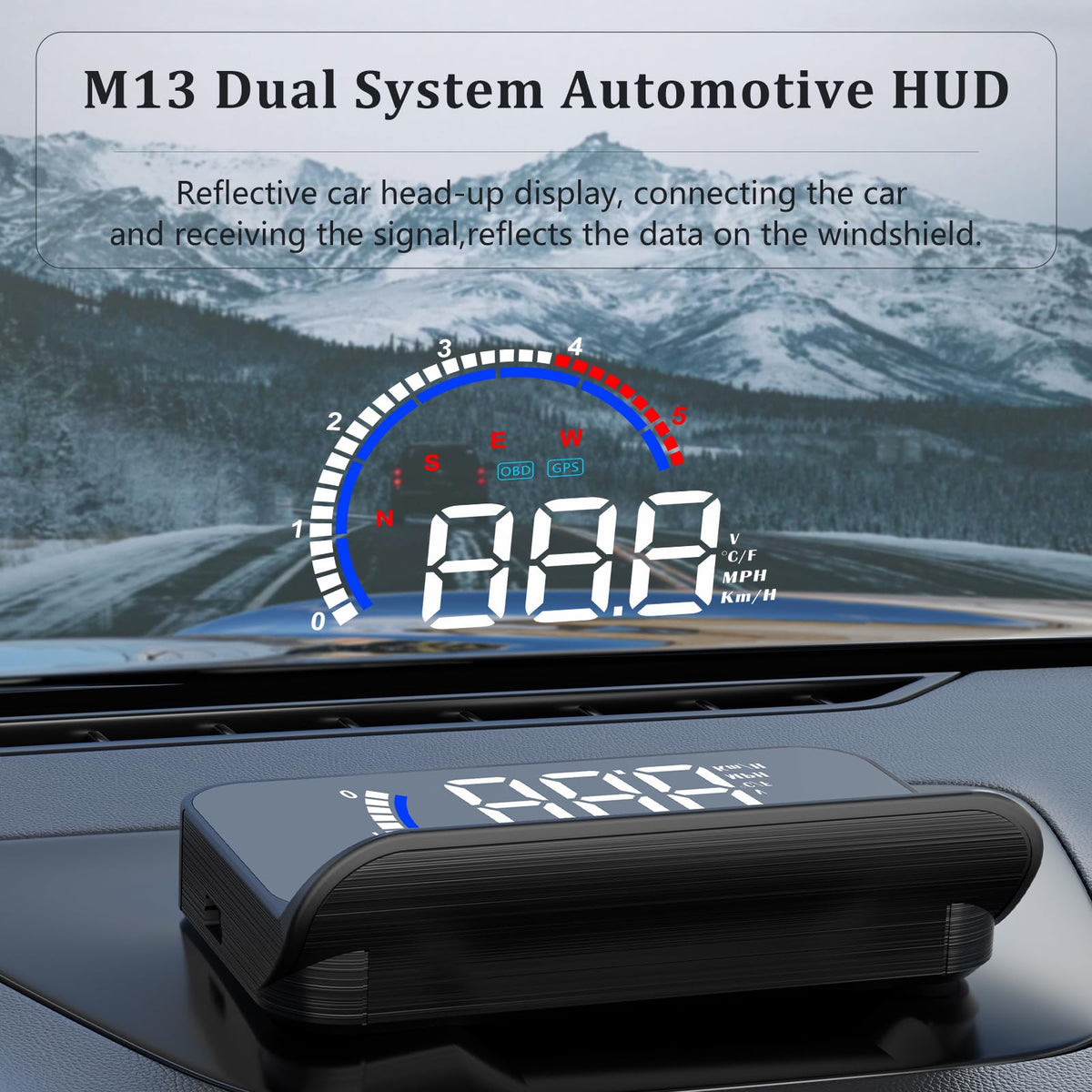 Liiiyuan Heads Up Display For Cars Windshield Projection M13, Obd2+Gps Car Gps Speedometer Display Speed, Fuel Consumption, Wate