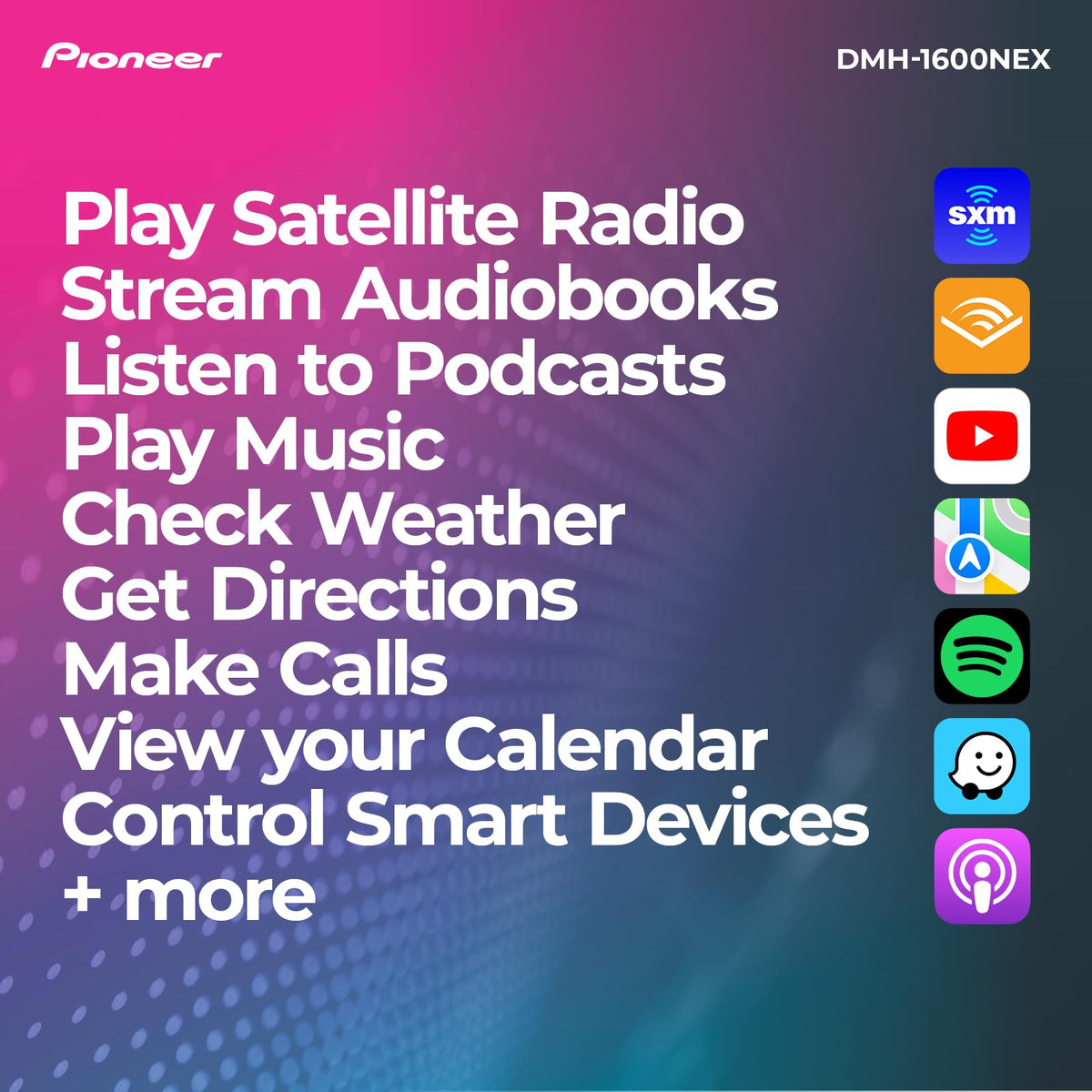 Pioneer Dmh-1600Nex 6.8'' Double-Din Digital Multimedia Receiver - Built In Bluetooth, Wired Apple Carplay And Android Auto, Tou