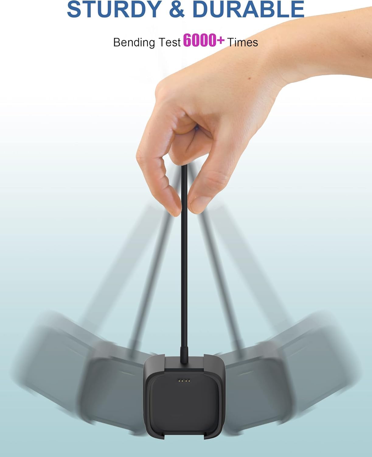 Q: How durable is the charging cable?A: The Fitbit Versa 2 charger is made of a pure copper core and has passed bend tests over 15,000 times, ensuring durability and longevity for regular use.
