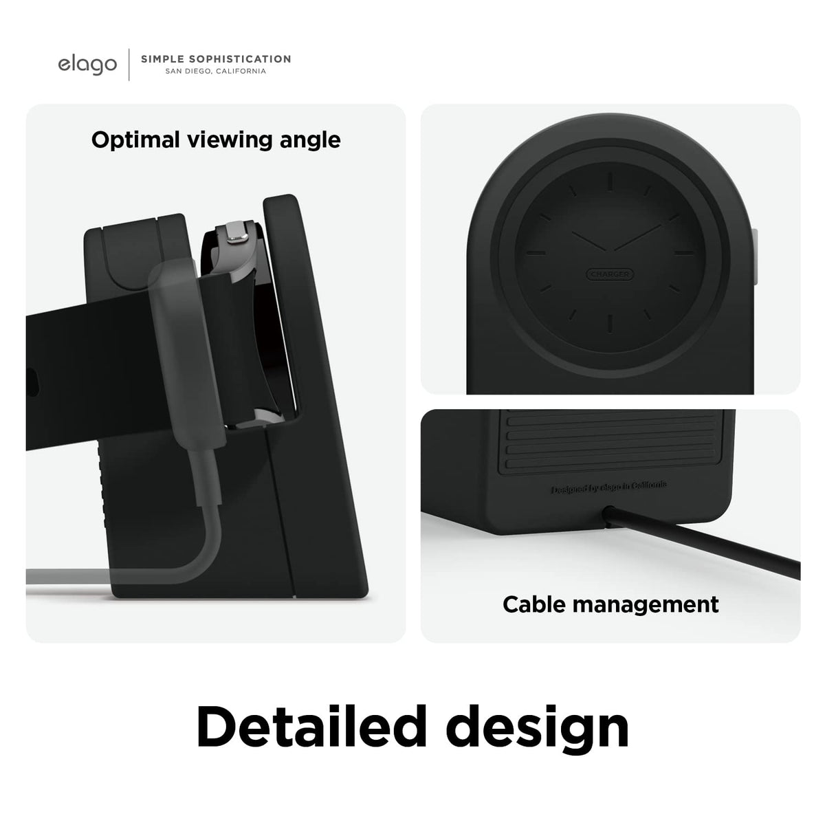 Elago Clock Watch Charger Stand Compatible With Samsung Galaxy Watch 4/4 Classic / 3 / Active (40~46Mm) - [Black] [Charging Cabl