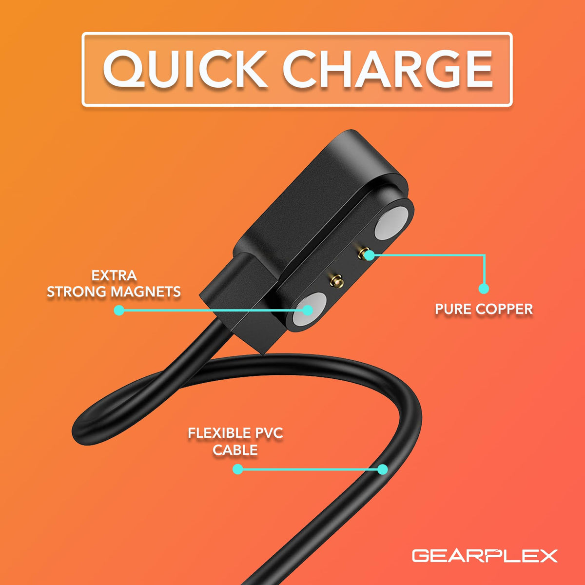 Gearplex Charging Usb Cable (2 Pin Magnetic) For Smart Watch Bluetooth Devices Black (Size- 2.5 Mm- 2 Pack)