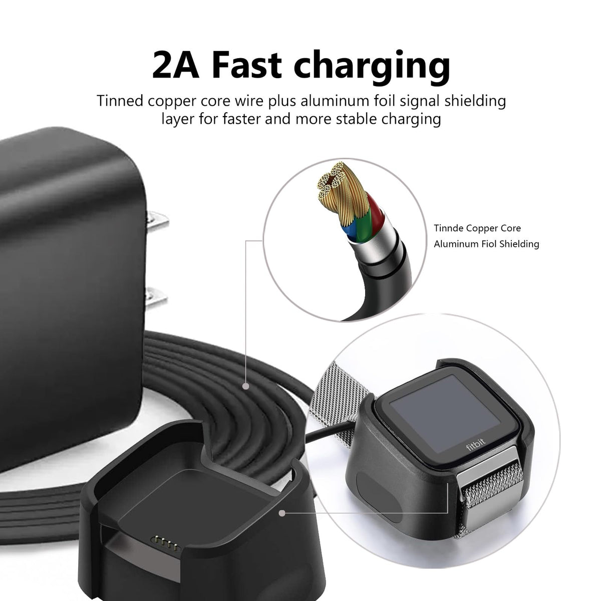 This Wall Charger Can Provide Convenient And Fast Charging For Your Versa/Versa Lite/Versa Special Edition Smartwatch, Just Plug It, It Is Made Of Exquisite Design And High-Quality Materials, Which Can Be Perfectly Matched With Any Decoration Style In Your Home. The Set Includes: 1 Pack Wall Charger +Charging Cord (Excluding Bluetooth 360 Speakers) Quickly And Easily Charge Your For Versa/Versa Lite/Versa Special Edition Smartwatch. Simple Design, Elegant Appearance, Suitable For All Kinds Of Home Environments It Can Charge Two Devices At The Same Time, Which Is Efficient While Maintaining Versatility. High-Quality Materials And Manufacturing Processes Ensure Durability