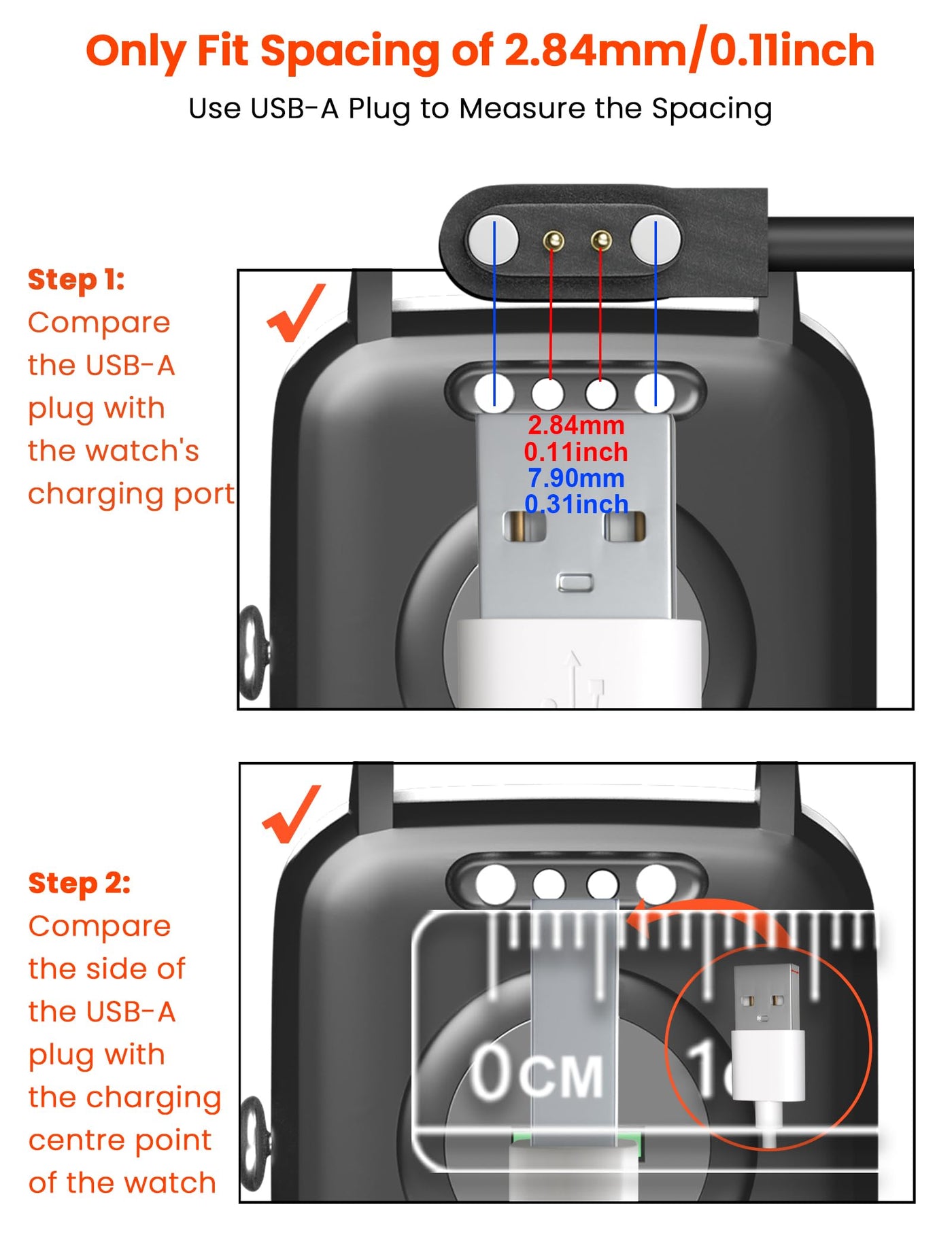 Precise Fit: Designed for a spacing of 0.11in (2.84MM), this charging cable is not compatible with 0.16in (4MM) spacing or other measurements. Use a USB-A plug to measure the spacing accurately.