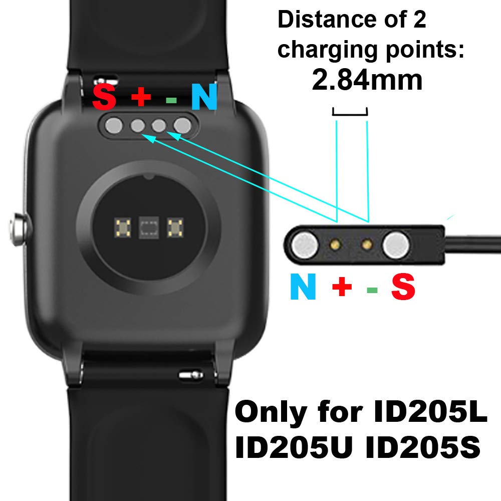 Smaate Magnetic Charger 2-Pack Compatible With Tozo S2, Aeac Id207, Enomir Id208Bt, Skg V7 V7Pro, Id205L, Grv Fc1, Id205Us Veryfit, Popglory P66 Smart Watch, Also Compatible With Smartwatch Id205L Id205S Id205U Id216 Uwatch 3 Fc1, Gt01, Iw2, Id206 And Iw1 Ew1 Gt01 Id206 C16 C17 A3_112, And Compatible With Liufiueq P86, And Compatible With Military Watch Amaztim Rgthuhu 171A C20 And Kospet Tank M1 172A If You Are Not Sure That Your Watch Is With The Model Numbers Above, Please Do Not Buy This Product How To Know Your Watchas Model Number 1 The App Name Is Veryfitpro 2 The Original Charger Is Magnetic 3 In The App, You Choose Adevicea In The Bottom, Then You Can See The Device Model Number: Id205L Id205S Id216 Or Id205U It Is Also Compatible With Letscom Gt01, Letscom Id206, Letsfit Iw1,Letsfit Iw2,Letsfit Ew1, Compatible With Kospet Uhoofit Coolhills C17 171Inch Smartwatch And Soundpeats Watch1 Smart Watch Distance Between 2 Charging Prongs Is 284Mm Electrical Polarity And Magnetic Pole Is: N+-S Please Unplug The Charger After You Finish Charging, Because The Magnetic Points May Be Absorbed On The Metal These Chargers Do Not Support Modle Id205, Please Double Check Length Of Cable: 60Cm Maxcurrent: 1A Maxvoltage: 5V Inside The Package: 2*Charger Cable 1*Support Card