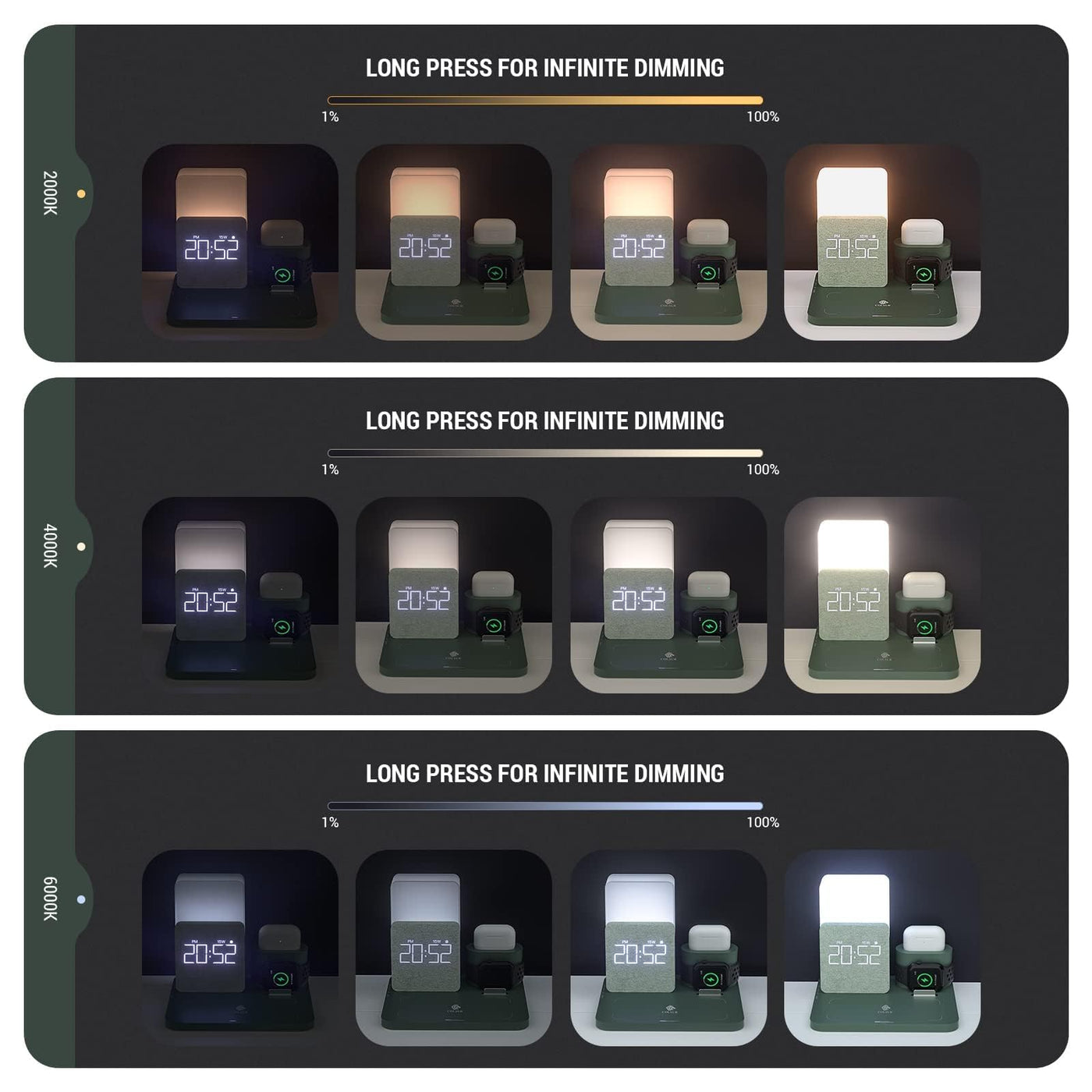 Wireless Charging Station, Iphone 3 In 1 Fast 15W Wireless Charger With Alarm Clock And Night Light, Charging Dock For Iphone 12