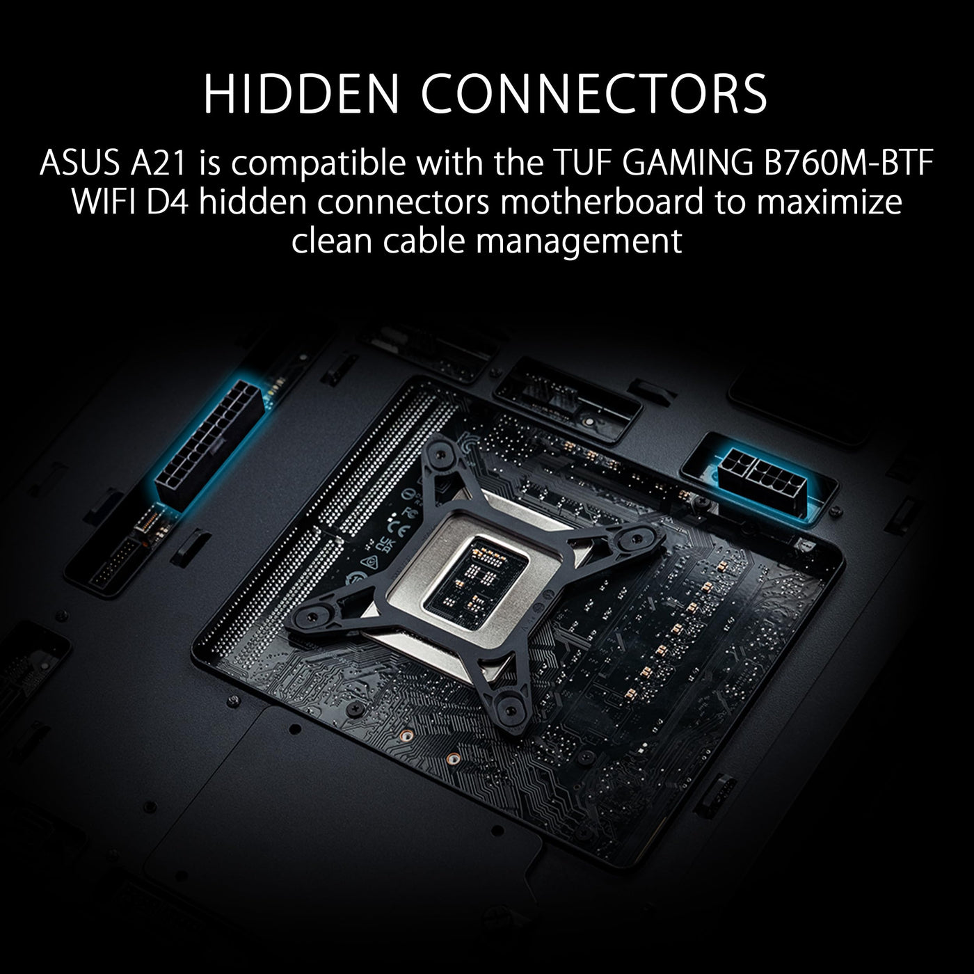 Asus A21 Micro-Atx Case Black Edition Includes The All New Btf Hidden Connector Technology By Asus To Maximize Clean Cable Management While Delivering Improved Airflow Via Mesh Front-Panel, Support For Graphics Cards Up To 380Mm, 360Mm Coolers, & Standard Atx Psus.
