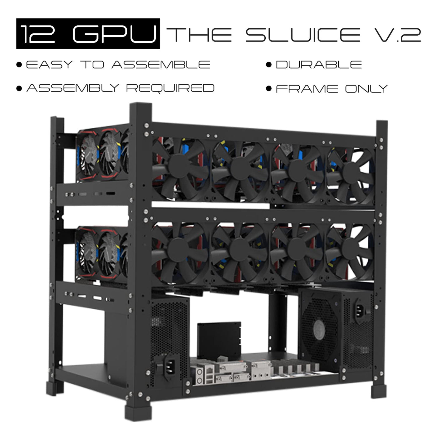 Aaawave The Sluice V2 12Gpu Stackable Open Frame Mining Rig Frame Chassis For Crypto Currency (Black)