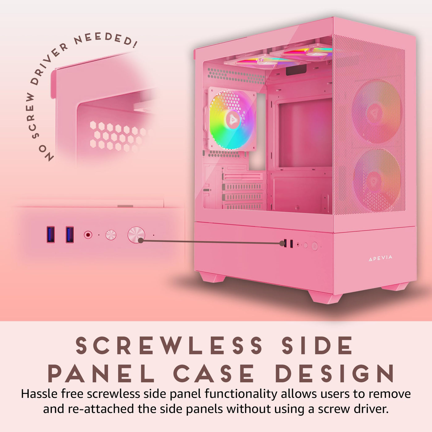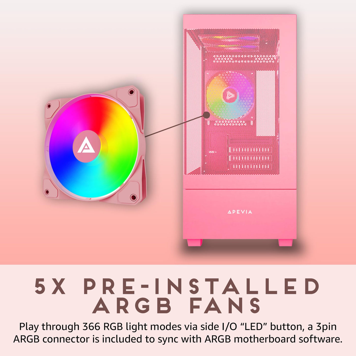 The Apevia Phantom Micro-Atx Mesh Dual-Chamber Pc Case Series Allows Gamers To Maximize Their Gaming Limits, Showcasing A Dual-Chamber Case Design, High Quality Features, And Exceptional Performance. The Apevia Phantom Showcases Five Illuminating 120Mm Argb Fans, Matched With The Metal Mesh Airflow Performance Front Panel Ensures Optimal Airflow - Two Positioned On The Top, Two On The Side Panel With Ventilated Holes, And One At The Rear. These Fans Radiate A Gleaming Glow With Inner Led Rings, And They Seamlessly Synchronize With Argb Software Through A 3Pin Argb Connector When Paired With Compatible Motherboards. Even Without Such Motherboard Compatibility, Gamers Can Choose Between A Staggering 366 Rgb Color Modes. Managing The Rgb Lighting Is Effortless Thanks To A User-Friendly Led Button On The Top Panel. Hold The Led Button For 5 Seconds, And You Can Seamlessly Switch Between The 366 Rgb Modes And Argb Motherboard Sync. The I/O Panel On The Side Offers Convenient Connections, Including 2X Usb 3.0 Ports, A Power Button, An Led Switch Button, And Hd Audio Jack For External Audio Devices. With Support For 240Mm Radiators On The Top Panel, Gamers Have The Option To Easily Install Sizable Water Cooling Aios, Elevating The Visual Appeal Of Their Setup. The Apevia Phantom'S Matching Paint Colors On Both The Exterior And Interior Define Its Premium Appearance. Facilitating Gpu Installation, The Case Supports Graphics Cards Up To 350Mm In Length. The Apevia Phantom Is Available In Black, White, And Pink Color Variants, Allowing Gamers To Choose The Perfect Color Setup For Their Style.