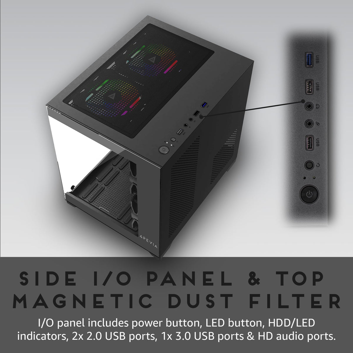 Apevia Prism Bk Prism Micro Atx Gaming Pc Cube Case W/ 5X 120Mm Argb Fans, 366 Rgb Modes, Dual Tempered Glass Panels, 240Mm Radi