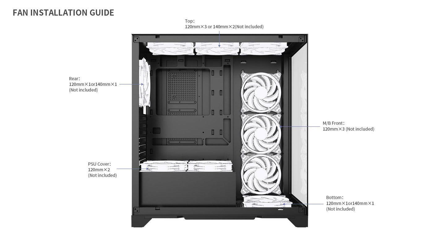 Bluegears Bgears B-Pellucid Atx Gaming Pc Case. Built-In Usb Type C And Usb3.0 Ports. Unobstructed Crystal-Clear Infinity View Tempered Glass Design From Front To Side Panel. Accommodate Up To 10 Fans For Massive Air Cooling Effect And To Show Off Your Gaming Rig With Argb Fan Lighting Effect. Slim Mid Tower Design Yet Spacious Interior Can Accommodate Gpu Length Up To 420Mm, Power Supply Up To 200Mm Depth, Cpu Heatsink Up To 185Mm Tall, And Support 120/240/280/360Mm Radiator In Various Locations. Support 3 X 3.5 Hdd Or 3 X 2.5 Ssd. Support Atx, Microatx, And Mini Itx Motherboards. Removable And Washable Drawer-Like Dust Filter On The Bottom Panel. Fans Are Sold Separately!! Highly Recommend B-Argb Dualring 120 Or 140Mm Fan As Shown In The Photos For Ultimate Argb Lightning Effect. Customer Service Support@Bgears.Com Or Call 702-988-6808 Rma Service Rma@Bgears.Com Or Call 702-988-6808