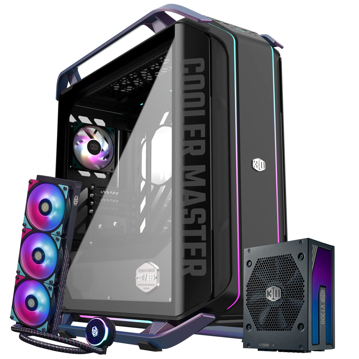 Cooler Master 30Th Year Anniversary Cosmos Infinity C700M E Atx Full Tower, Pl360 Flux Close Loop Aio Cpu Liquid Cooler, V1300 P