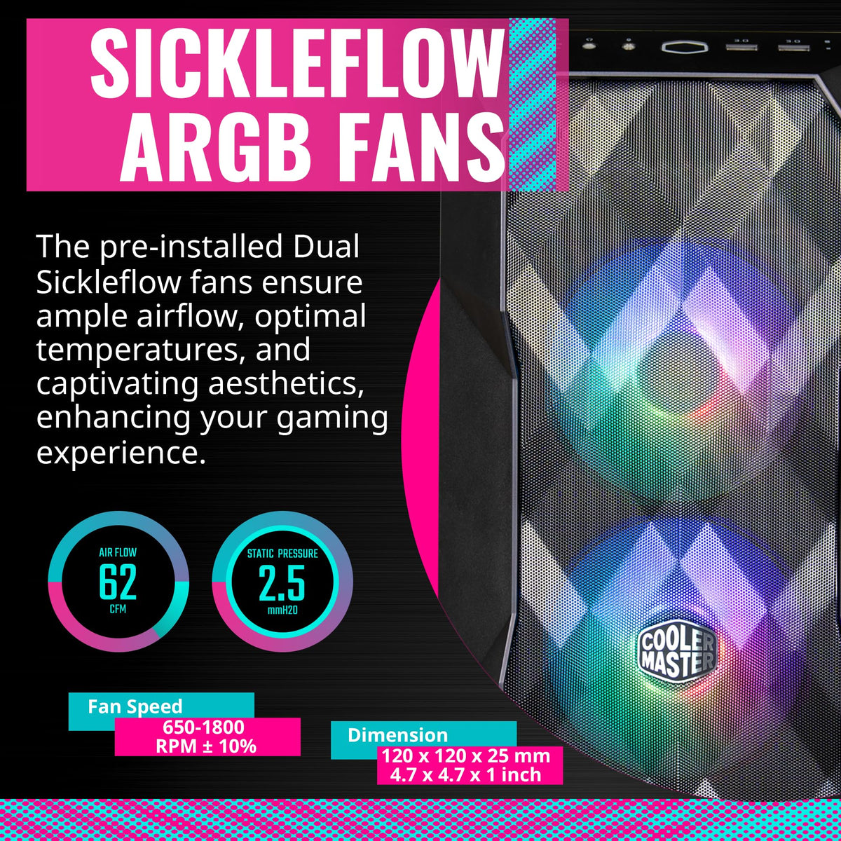The Cooler Master Td300 Mesh Is A Compact Mini-Tower Pc Case That Combines A High-Volume Front Panel Air Intake With Sculptural 3D Technology, Builder-Friendly Design Features, And Ample Hardware Capacity. Aesthetically, The Td300 Mesh Features An Elegant 3D Finemesh Front Panel With Excellent Dust Filtration, Two Pre-Installed Sickleflow Argb 120Mm Fans, An Edge-To-Edge Tempered Glass Side Panel, And Psu Shroud For Clean Aesthetics. Synchronized System Lighting Can Be Easily Set Up Via An Included 4-Fan Pwm/Argb Hub. Functionally, A Fully Detachable Top Panel Makes Assembly Easier And Less Fuss, While An Adjustable Hdd/Ssd Cage Can Be Positioned For Extra Radiator Or Psu Space As Needed. With Ample Capacity For Micro-Atx And Mini-Itx Motherboards, Large Graphics Cards (Up To 344Mm), And 360Mm Front & 280Mm Top Radiator Cooling. Compact & Cool, The Td300 Mesh Offers An Excellent Balance Of Performance And Style In An Elegant, Builder-Friendly Chassis.