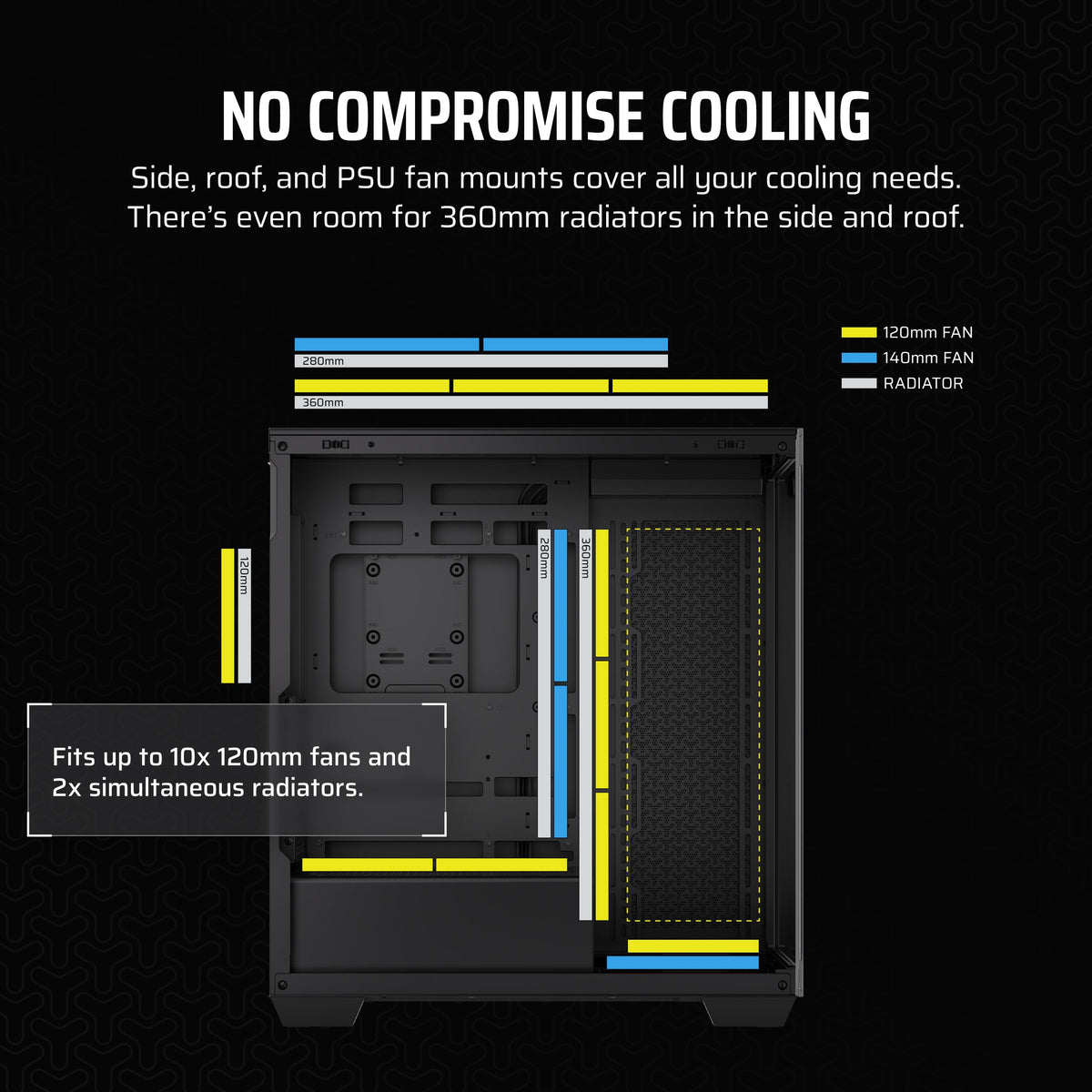 The Corsair 3500X Mid-Tower Glass Pc Case Is Your Gateway To A Superior Pc Build, Combining Builder-Friendly Features With A Stunning Wraparound Tempered Glass Aesthetic. Multiple Side, Roof, And Bottom Fan Mounting Options Ensure That Even High-Performance Components Stay Cool. The 3500Xs Spacious Interior Will Fit Most Large Graphics Cards And Cpu Coolers. Compatibility With Asus Btf And Msi Project Zero Reverse Connection Motherboards Give You A Cable-Free View Of Your Pc.