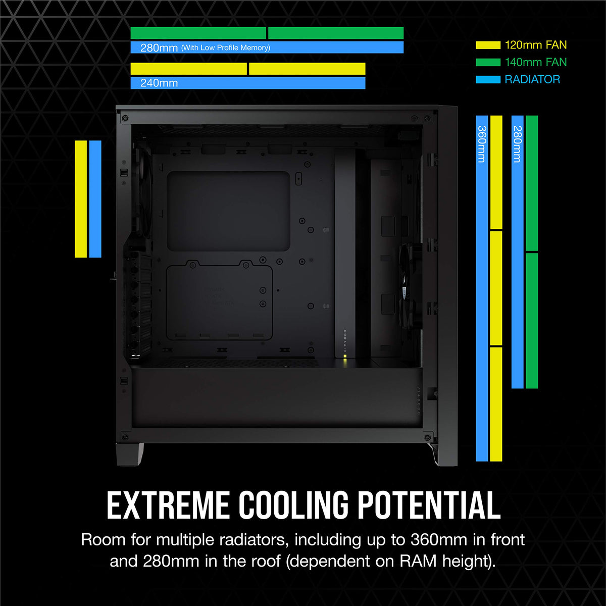 The Corsair 4000D Airflow Is A Mid-Tower Atx Case With Easy Cable Management And Exceptional Cooling. A Steel Front Panel Offers Optimal Airflow To Your Components, Accompanied By Two Included 120Mm Airguide Fans Designed With Anti-Vortex Vanes That Enhance Cooling. The Corsair Rapidroute Cable Management System Makes It Effortless To Route Major Cables Through A Single Channel, With 25Mm Of Routing Depth. The 4000D Airflow Offers All The Space You Need For Excellent Cooling And Storage, With Room For Radiators In Sizes Up To 360Mm And Four Storage Drives. Complete With A Modern Front I/O Panel Including A Usb-C Port, The 4000D Airflow Makes Great Cooling And Clean Looks Easier Than Ever.