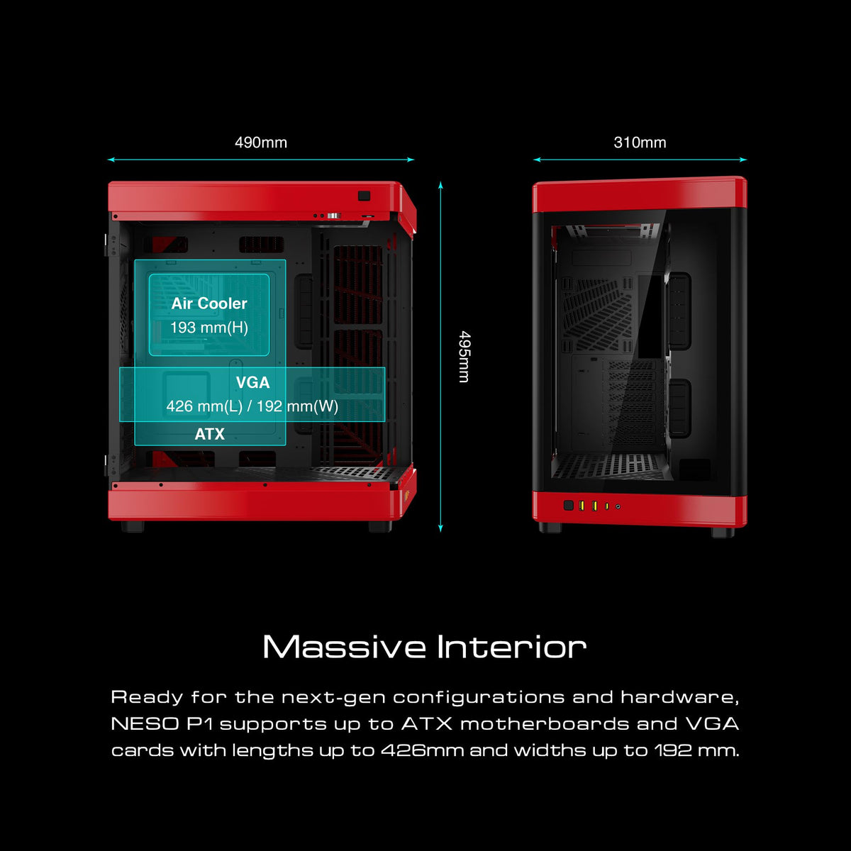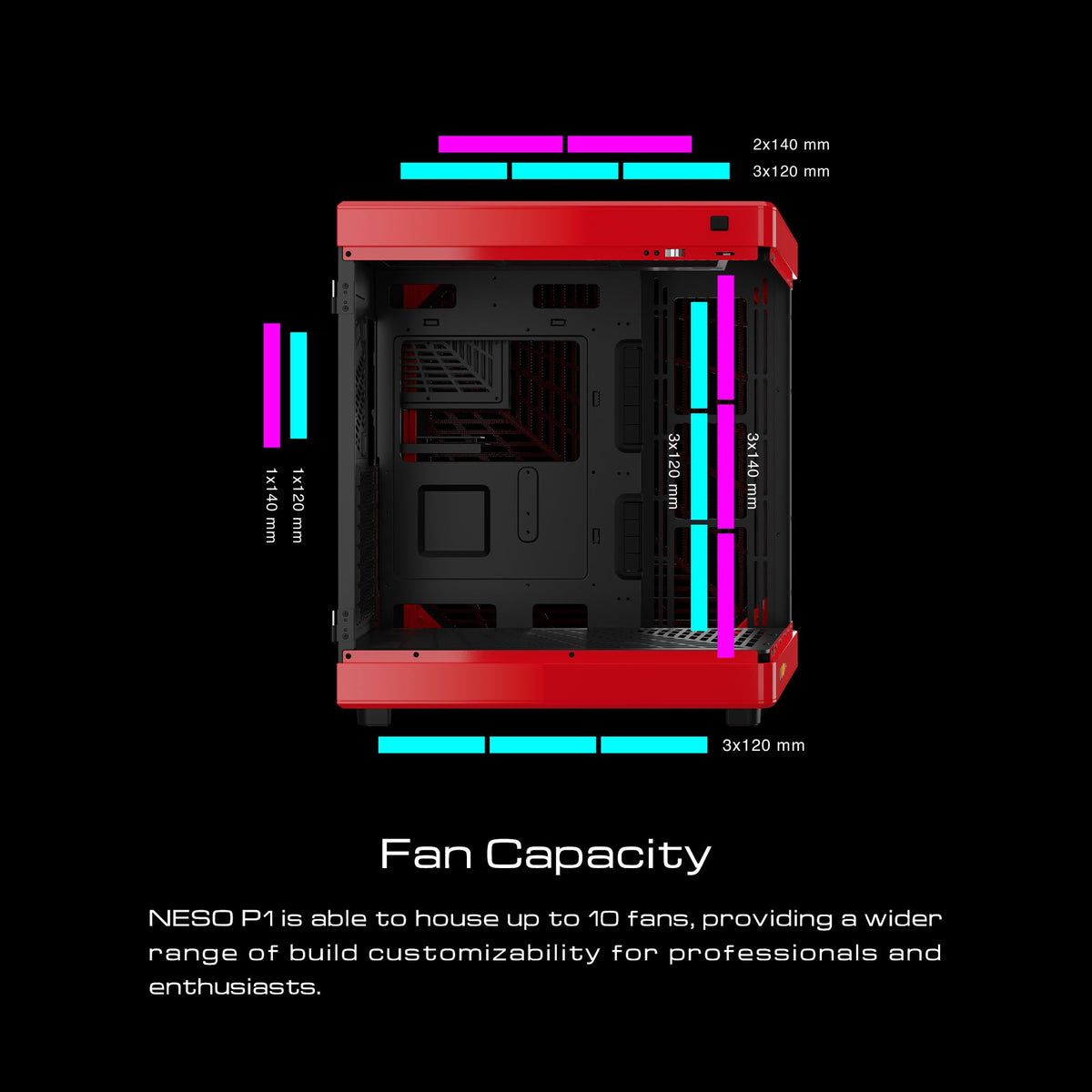 'Radiator Support Top: 360Mm?280Mm / Side: 360Mm?420Mm / Rear: 120Mm Fan Support Top: 3 X 120Mm?2 X 140Mm / Side: 3 X 120Mm? 3 X 140Mm / Rear: 1 X 120Mm / Bottom: 3 X 120Mm Drive Bays 2 X 3.5'''' Or 1 X 2.5''''+1 X 3.5''''(Hdd Cage) 2 X 2.5''''(Hdd Cage) + 3 X 2.5'' (Ssd Bracket) I/O Port Usb 3.0 X2, Type C X 1, Hd Audio X1, Led Control X1 Clearance Cpu Cooler Height Limitation:193Mm Vga Length Limitation:426Mm Vga Width Limitation: 192Mm Psu Length Limitation:180Mm''