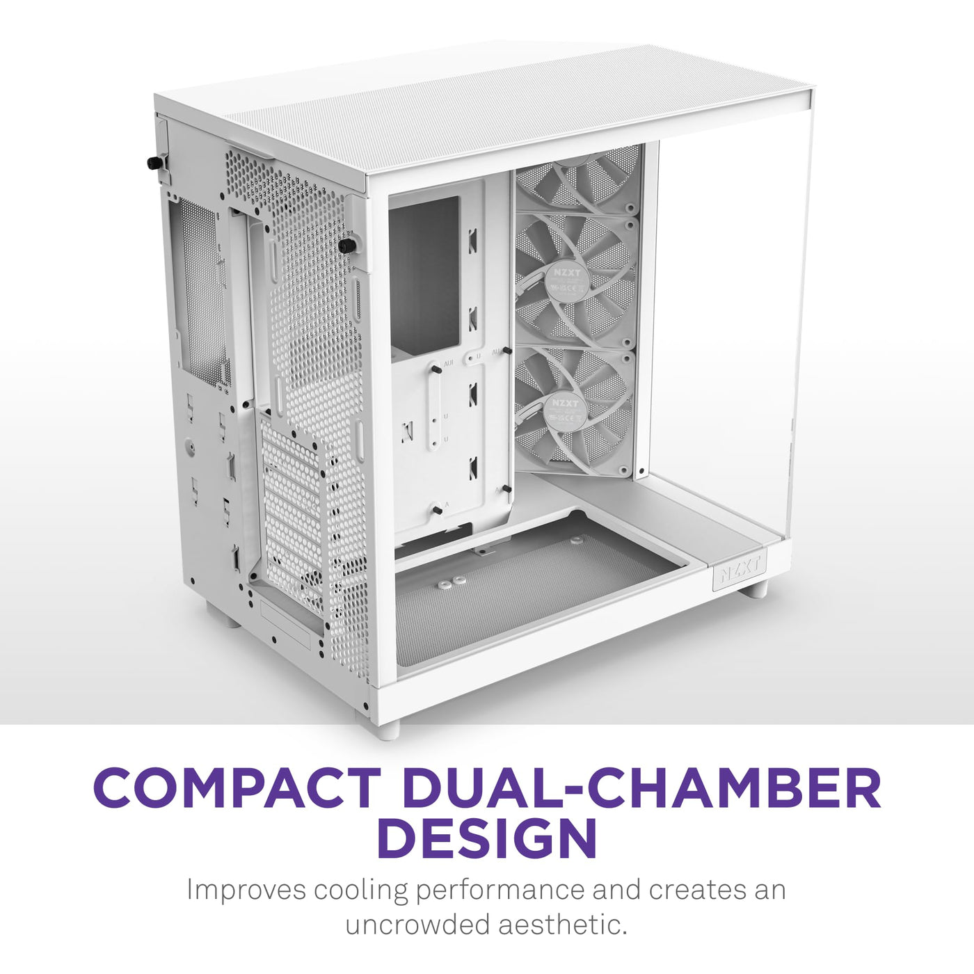 Nzxt H6 Flow | Cc-H61Fw-01 | Compact Dual-Chamber Mid-Tower Airflow Case | Panoramic Glass Panels | High-Performance Airflow Pan