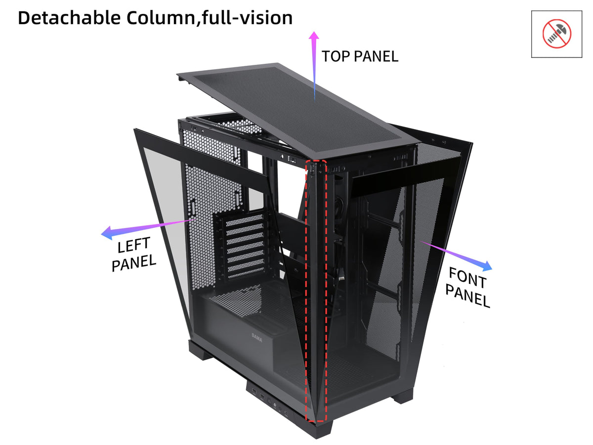 1.Tempered Glass Side Panel And Front Panel 2.Pre-Install Universal 4Ports Of Argb Hub , And Pre-Install 4 Argb Fans With Universal Connectors 3.Fast And Easy Disassemble And Assemble Structure, Adjustable L/O Component Position, Universal Usb3.0*2 Type-C*1 Interface 4.Support Latest Back Plug Atx/M-Atx/Itx Motherboard, Max Gpu Length 430Mm, Max.Cpu Height 183Mm,Support Eatx/Atx/M-Atx/Itx Motherboard 5.Top Support 360Mm Radiator, 7X120Mm/6X140Mm Fans (Pre-Installed With Argb Fans) 6.Huge Space For Cable Management