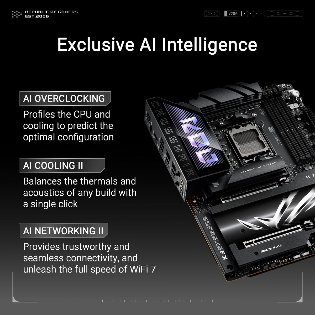 Asus Rog Crosshair X870E Hero Amd X870E Am5 Atx Motherboard, Advanced Ai Pc Ready, 18+2+2 Power Stages, Ddr5, Pcie 5.0, 5X M.2,
