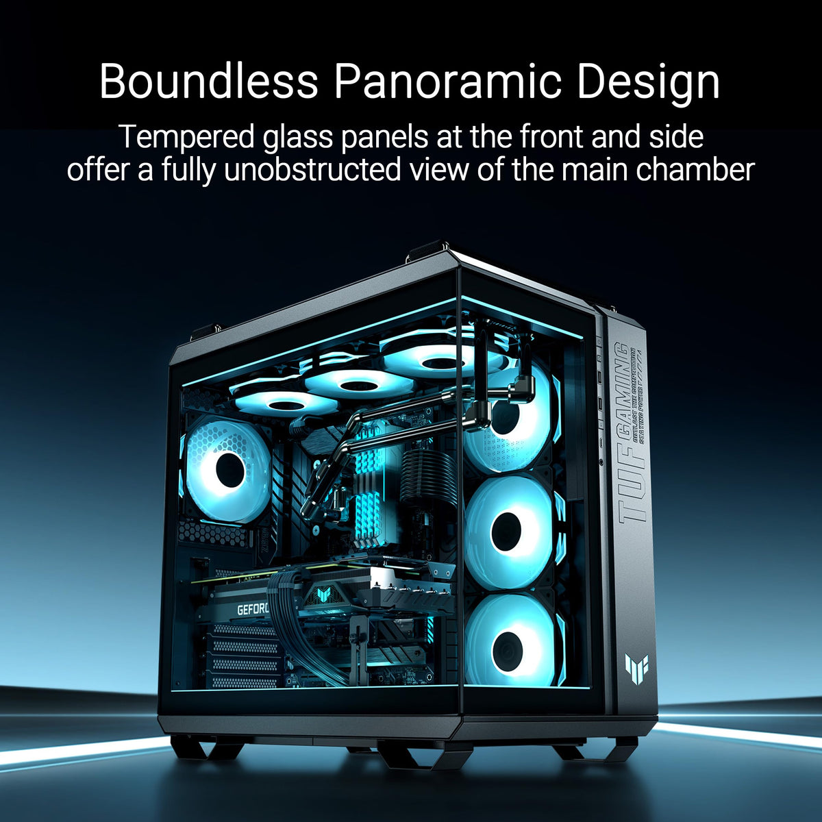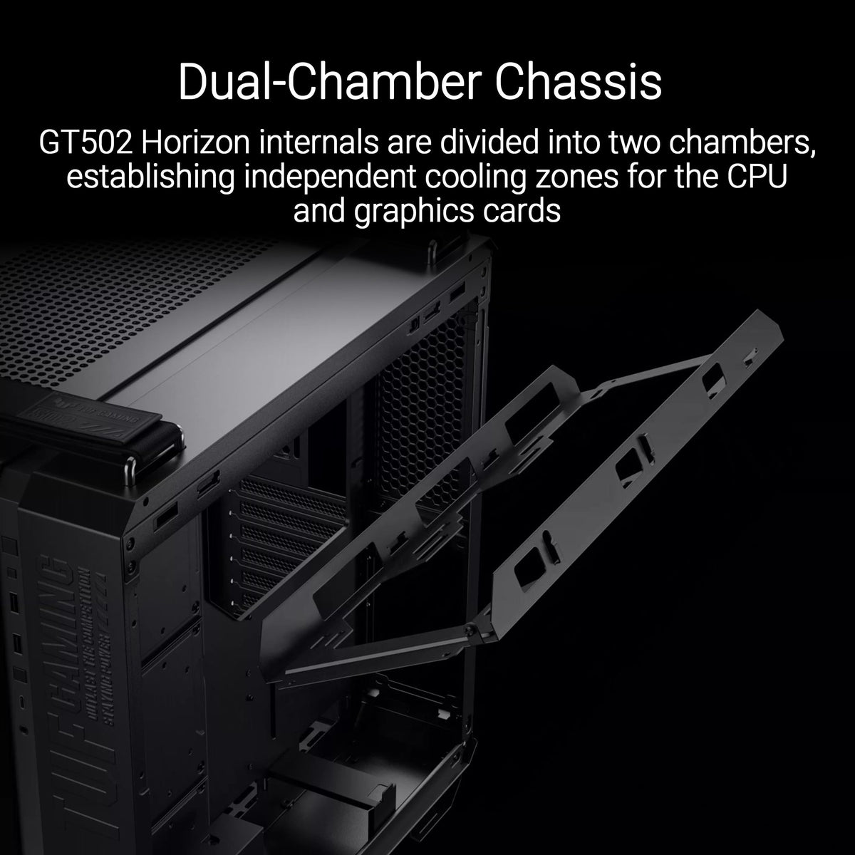 Asus Tuf Gaming Gt502 Horizon Atx Mid Tower Gaming Case (Boundless Panoramic Design, Dual Chamber, Independent Cpu And Gpu Cooli