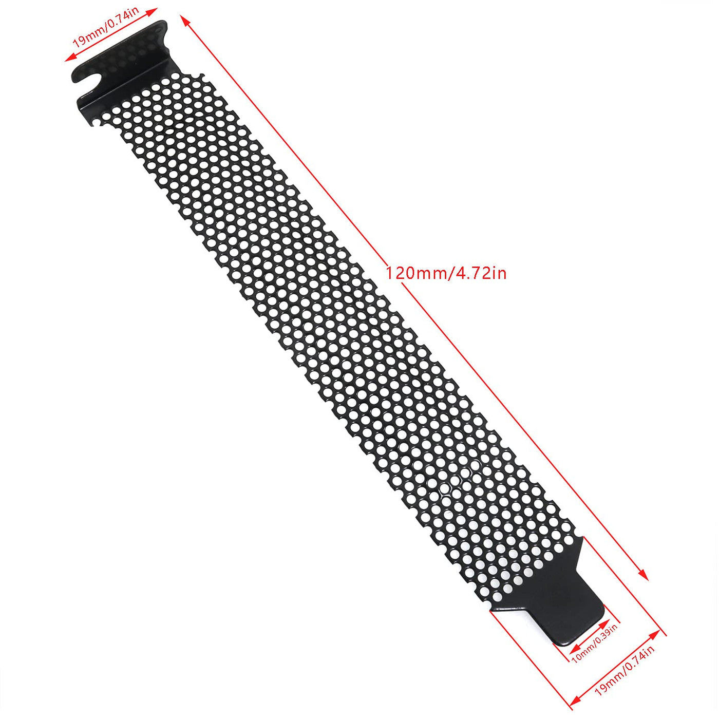 Features: The Hot Air Near The Graphics Card Can Be Quickly Dissipated By Opening The Pci File, Thereby Improving Heat Dissipation Efficiency. It Can Block Some Dust. It Is Easy For Players To Use, Easy To Install And Clean. Specification Model: Pci Slot Cover Material: Black Metal Plated Colour: Black Hole Diameter: About 0.8 Mm Dimensions (Length X Width X Height): About 120 X 19 X 12.2 Mm/4.72 X 0.74 X 0.48 Inches Precautions Please Allow A Small Amount/Dimension Due To Manual Measurement. Due To The Influence Of Light And Display Brightness. Packing Quantity: 5Pcs Pci Slot Covers 5Pcs Screws