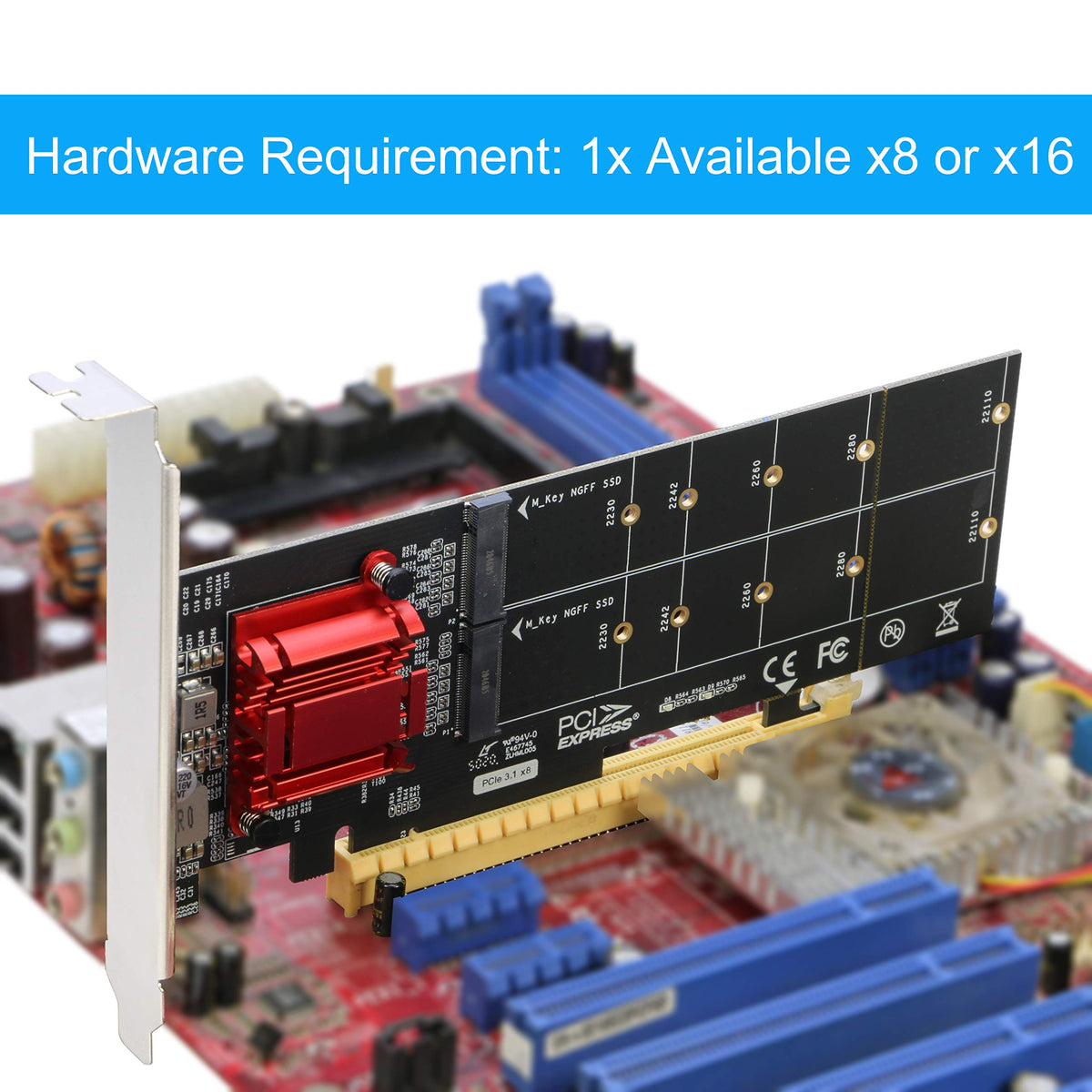 Dual Nvme Pcie Adapter, Riitop M.2 Nvme Ssd To Pci E 3.1 X8/X16 Card Support M.2 (M Key) Nvme Ssd 22110/2280/2260/2242/2230