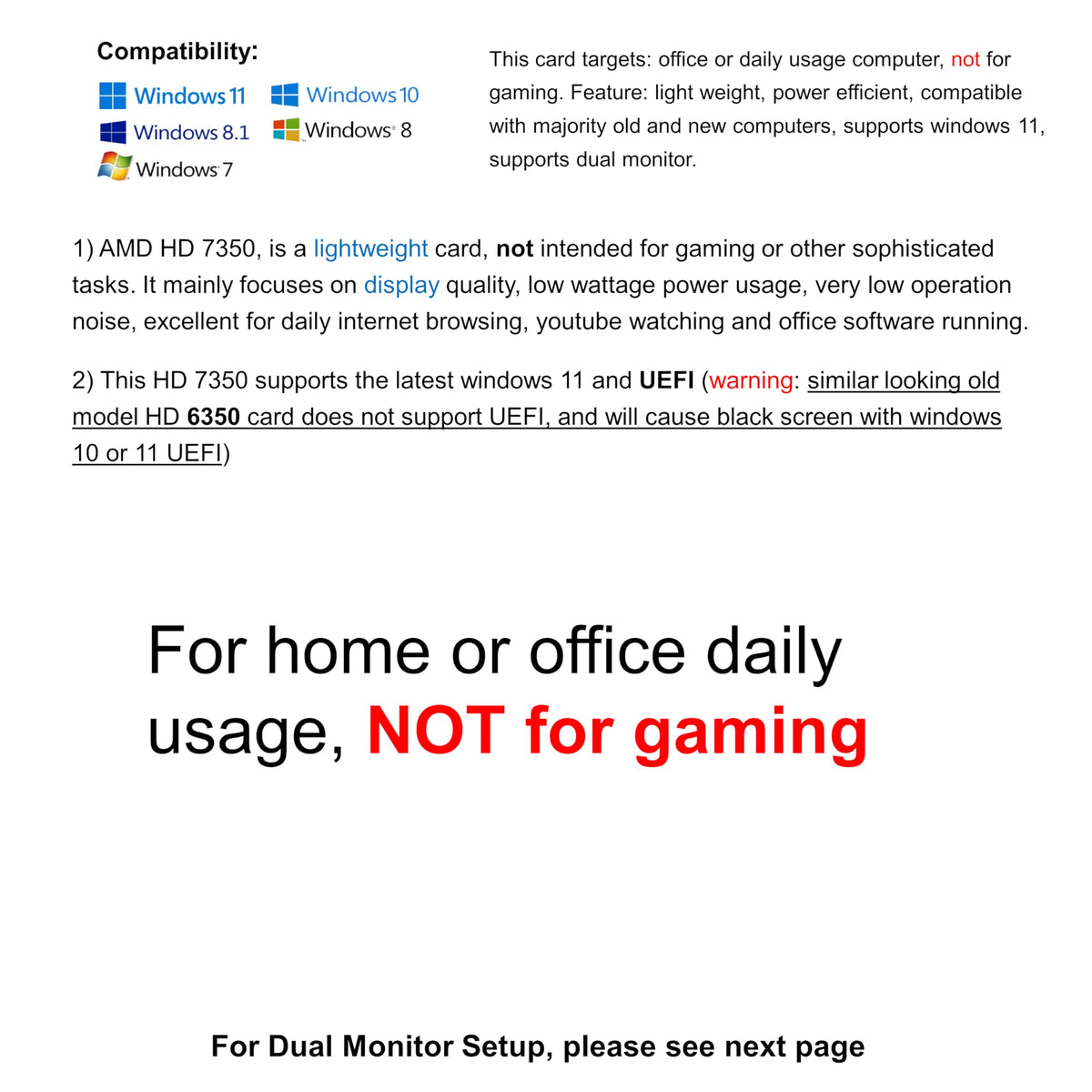 Q: Can I use the Radeon HD 7350 for gaming?A: While the Radeon HD 7350 is primarily designed for home and office use, it can handle light gaming. However, for more demanding games, a higher-end graphics card is recommended.