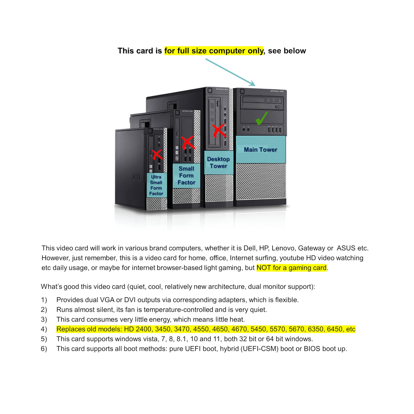 Epic It Service Amd Radeon Hd 7350 512Mb Graphics Card (Full Size Bracket, Dual Dvi), Fits Normal Size Computer Only, Uefi Boot