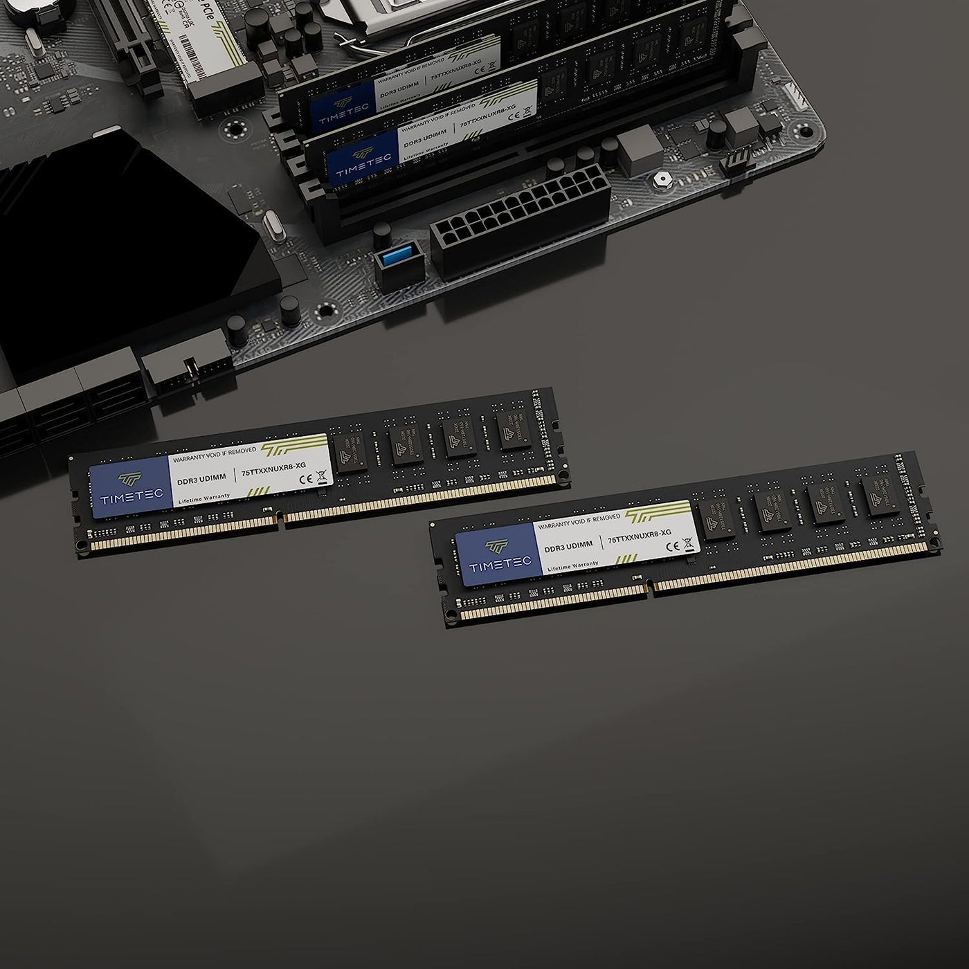 Q: What is the voltage of the Timetec DDR3 RAM?A: This RAM kit operates at both 1.5V and 1.35V, making it versatile for different motherboard requirements.