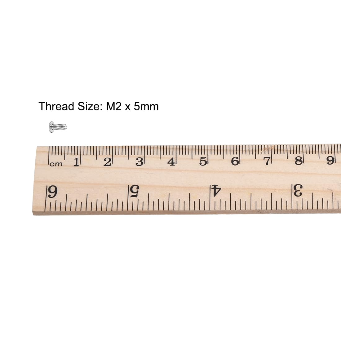 Q: What are the dimensions and specifications of the uxcell M2x5mm Phillips screw?A: The uxcell M2x5mm Phillips screw has a thread size of M2 x 5mm, a thread pitch of 0.4mm, and a screw head size of 3.8mm in diameter. It is made of carbon steel and features a carburization and nickel plating finish for enhanced corrosion resistance and durability.