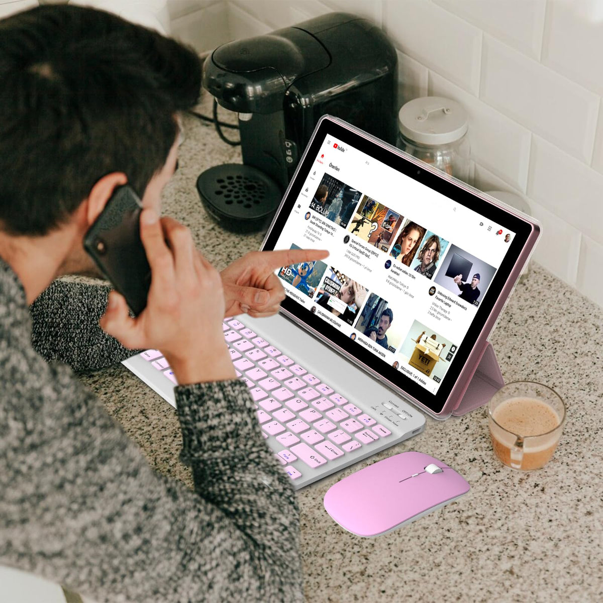 2 In 1 Tablet, 10 Inch Android 13 Tablet With Keyboard, 10Gb+64Gb+512Gb Expand Dual Camera, Ips Touch Screen Tablet Computer, Wi