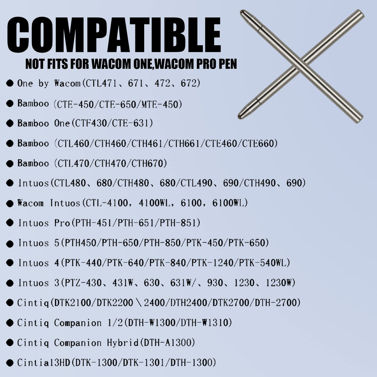 Cost Saving No Wear Out Titanium Alloy Stainless Pencil Nibs Compatible With Wacom Specified Series Digital Pen, It Is Recommended To Use With The Screen Protector Compatible With Below Wacom Pens: One By Wacom Ctl-672 , Ctl-671 , Ctl-472 , Ctl-471; Wacom Bamboo Intuos Ctl460,Ctl-490 , Ctl-690 , Cth-490 , Cth-690, Cth-470,Cth-480 Cth-480S ;Intuos 3, Intuos 4L Digital Pen,Please Check The Pen Before Purchasing Remain The Same Sensitive Pressure With The Original Standard Tips.Convenient Replacing ,Replace The Tips Within A Minutes Package Include 2 Pcs Wacom Standard Digital Nibs And The Installation Tool ,Not Including The Pen