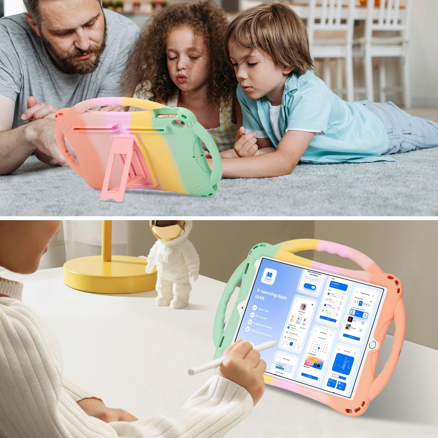 Q: How easy is it to carry the case around?A: The case includes handles and a strap, making it easy for kids to grip and carry their iPad. This design enhances portability, allowing for worry-free travel and use.