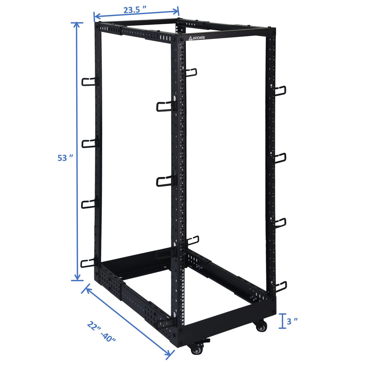 Aeons 27U 4 Post It Open Frame Server Rack 19 Inch Depth Adjustable (22' To 40') Network Equipment Av Gear W/Casters And Cable Management