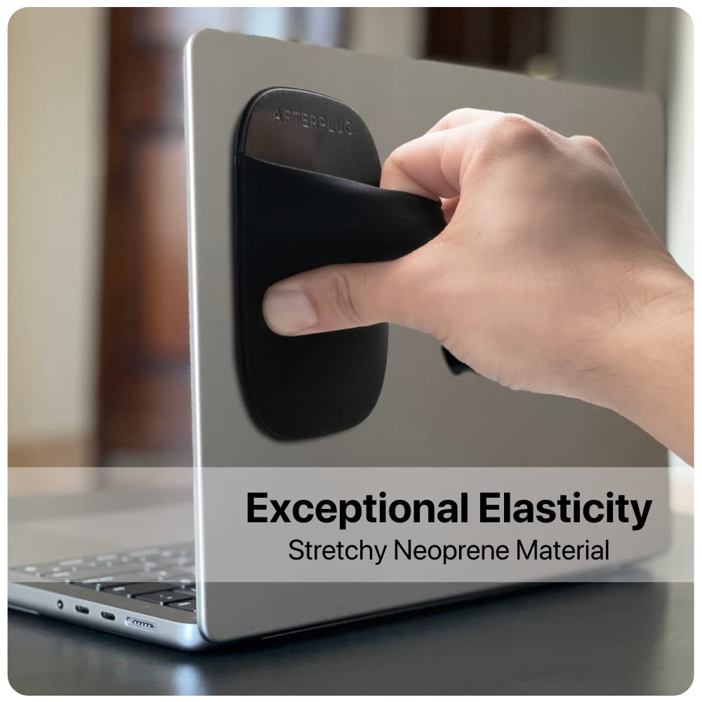Q: How does the adhesive attachment work on the Afterplug Mouse Pouch?A: The Afterplug Mouse Pouch attaches securely to your laptop using high-quality 3M tape, ensuring a strong bond while allowing for easy detachment without leaving residue. However, frequent removal may weaken the adhesive, so it's recommended to check the surface compatibility before application.
