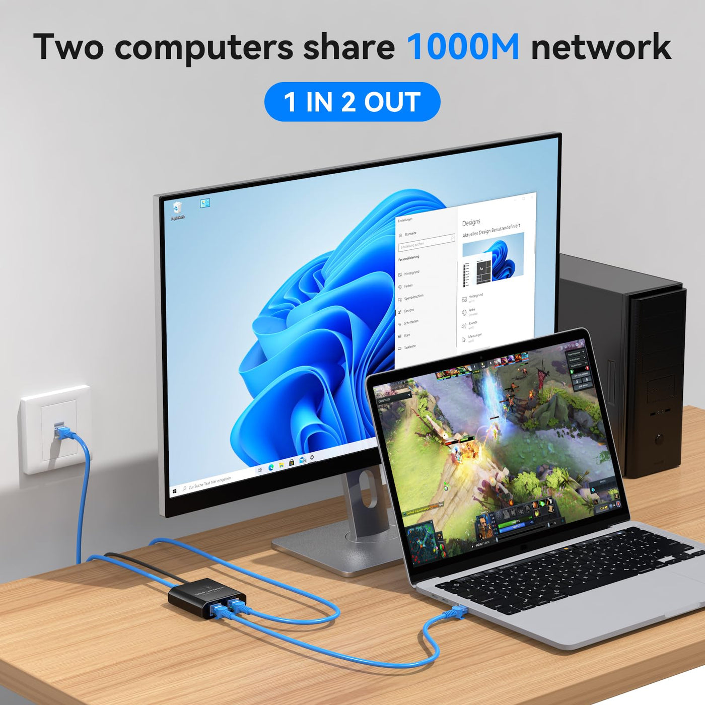 Ailvlvng Ethernet Splitter 1 To 2 1000Mbps Internet Cable Splitter 1 In 2 Out High Speed Either Network Splitter Gigabit Dual La