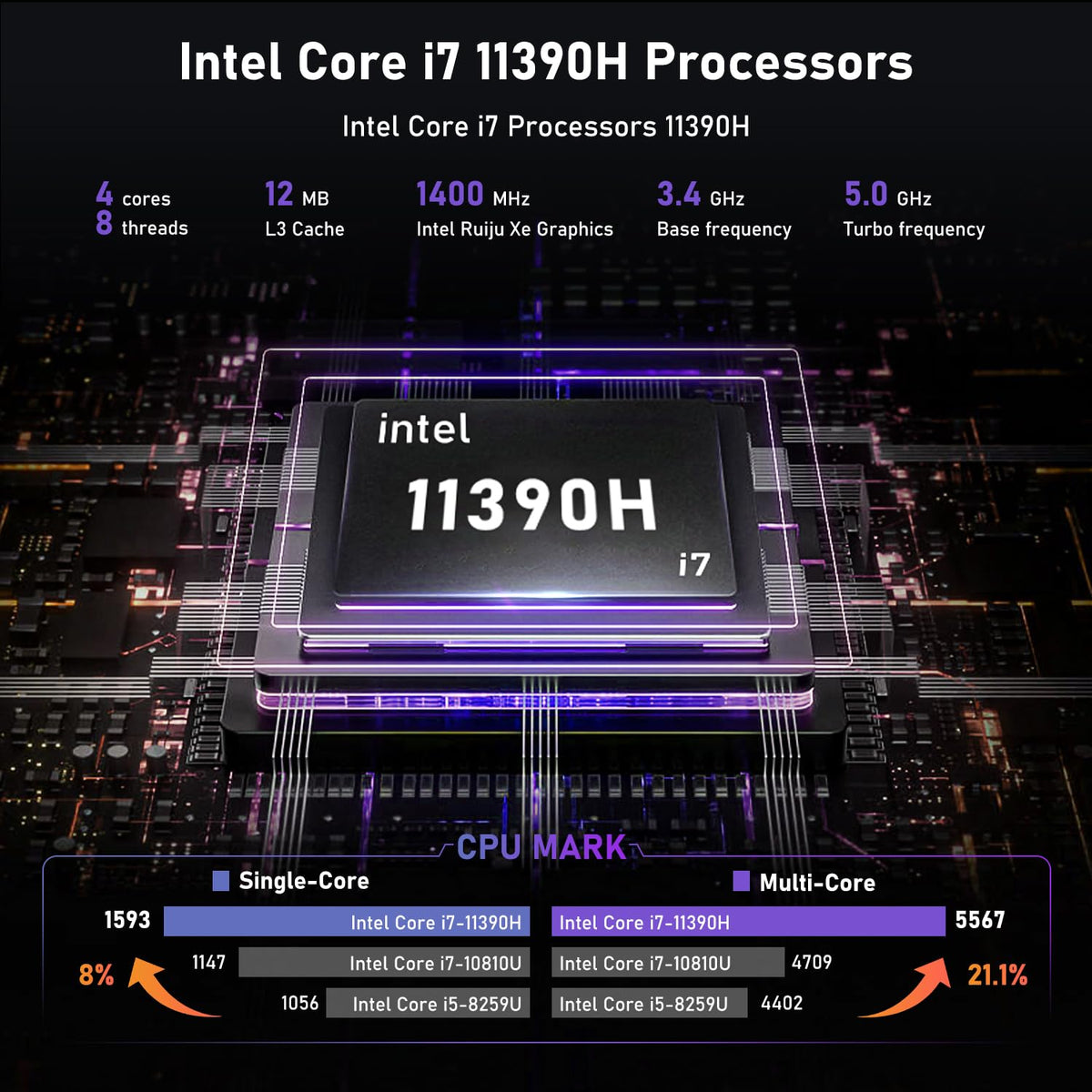 Alliwava H90 Mini Pc Intel I7 11390H,32Gb Ddr4 512Gb Nvme Ssd Mini Computer, Small Desktop Computer Support 8K Uhd/Wifi 6/Bt 5.0