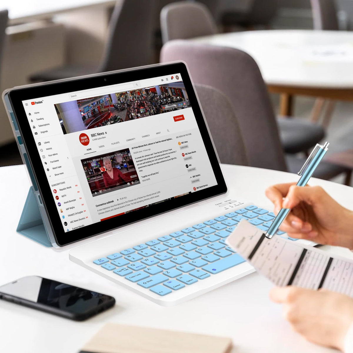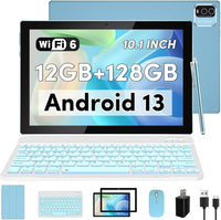 Android 13 Tablet 10 Inch, 2 In 1 Tablets With Keyboard, 12Gb Ram+128Gb Rom 1.8Ghz Quad Core Cpu, 2.4G/5G Wifi 6 Bt 5.0 Tablet P